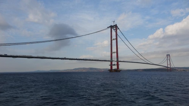 Tamamlandığında 'dünyanın en büyük orta açıklığına sahip asma köprüsü' unvanına kavuşacak olan 1915 Çanakkale Köprüsü’ne çıkan gazeteciler, çalışmaları 318 metre yükseklikten görüntüleyerek, yetkililerden bilgi aldı. 1915 Çanakkale Köprüsü’ne gelecek olan Ulaştırma ve Altyapı Bakanı Adil Karaismailoğlu'nun gerçekleştireceği ziyaret öncesi, Lapseki Şekerkaya mevkiinde Ankraj Sahası’na gelen gazeteciler, teknelere binerek, Asya’daki kuleye çıktı. 60 a yakın gazeteci iki grup halinde asansörlerle 318 metre yüksekliğe çıkarak yapılan çalışmaları yerinde inceledi. 1915 Çanakkale Köprüsü’ne gelecek olan Ulaştırma ve Altyapı Bakanı Adil Karaismailoğlu'nun 4 bin 608 metre uzunluğundaki, işçilerin üzerinde yürüdüğü ‘kedi yolu’na çıkarak Asya’dan Avrupa yakasına geçmesi bekleniyor.