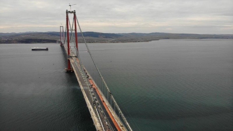 Tamamlandığında 'dünyanın en büyük orta açıklığına sahip asma köprüsü' unvanına kavuşacak olan 1915 Çanakkale Köprüsü’nde son rötuşlar yapılıyor. Köprünün yollarında asfaltlama çalışmaları yapılırken, Şubat ayının son haftasında açılış töreniyle hizmete girmesi bekleniyor. Bu sayede, Asya ve Avrupa yakalarını birbirine bağlayacak olan boğaz köprüsünde karşıdan karşıya geçiş süresi 6 dakikaya inecek. Nüfusa paralel olarak artan araç sayısıyla birlikte Çanakkale Boğazı, özellikle bayram tatillerinin yanı sıra yaz aylarında yaşanan yoğunluğa bağlı olarak uzun bekleme süresiyle geçilebilirken, kış aylarında olumsuz hava koşullarının etkili olduğu günlerde ulaşımda aksamalar yaşanıyor. Tüm bu problemlere kalıcı çözüm üretecek ve boğazda kesintisiz ulaşım sağlayacak olan 1915 Çanakkale Köprüsü'nün hizmete açılması için geri sayım başladı.