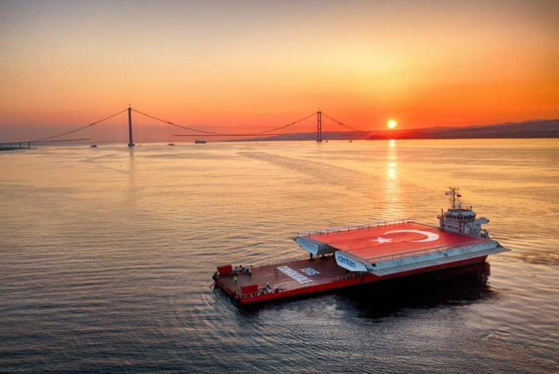 Tamamlandığında dünyanın en büyük orta açıklığına sahip asma köprüsü unvanına kavuşacak olan 1915 Çanakkale Köprüsü’nün son tabliye bloğu Çanakkale’ye ulaştı. Bin 500 metrekarelik aydınlatılmış Türk Bayrağı taşıyan son tabliye bloğu Gelibolu’daki Sütlüce şantiyesine ulaştı. İmalatçı firma Çimtaş’ın Gemlik ve Gölcük fabrikalarında üretilen tabliyelerin ilki, 20 Kasım Cuma günü firmaya ait ‘GMK- 1’ isimli gemi ile 18 saat süren yolculukla Çanakkale’ye getirilmişti. 87 tabliyeden oluşan köprünün ana yollarının sonuncusu Gölcük Tesisleri’nden 31 Eylül Salı günü yola çıktı. Gelibolu Sütlüce’deki şantiyeye getirilen bin 500 metrekarelik aydınlatılmış Türk bayrağı taşıyan son tabliye bloğu Çanakkale’ye ulaştı. Nüfusa paralel olarak artan araç sayısıyla birlikte Çanakkale Boğazı özellikle bayram tatillerinin yanı sıra yaz aylarında yaşanan yoğunluğa bağlı olarak uzun bekleme süresiyle geçilebilirken, kış aylarında olumsuz hava koşullarının etkili olduğu günlerde ulaşımda aksamalar yaşanıyor. Tüm bu problemlere kalıcı çözüm üretecek ve boğazda kesintisiz ulaşım sağlayacak olan 1915 Çanakkale Köprüsü'nün hizmete açılması için geri sayım başladı. Avrupa ve Asya kıtalarını Çanakkale Boğazı'nda ilk kez birbirine bağlayacak 1915 Çanakkale Köprüsü'nün temeli, Cumhurbaşkanı Recep Tayyip Erdoğan tarafından 18 Mart 2017'de atılmıştı. Proje, Malkara ile Çanakkale arasında 1915 Çanakkale Köprüsü’nü de içeren 88 kilometre otoyol ve 13 kilometre bağlantı yolundan oluşuyor.