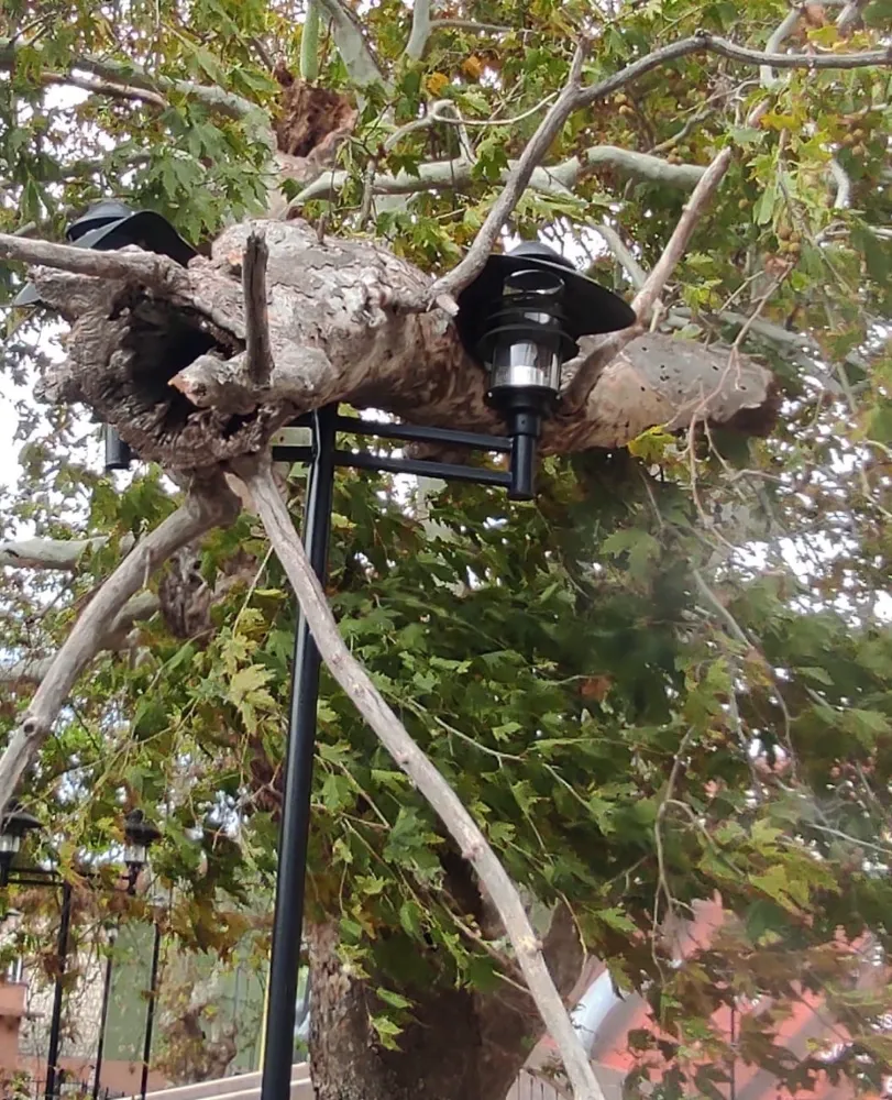 200 yıllık çınar ağacının dalı koptu, aydınlatma direği faciayı önledi