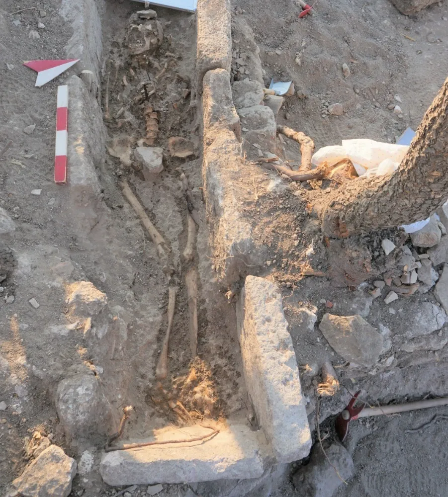 Ezine ilçesine bağlı Dalyan köyündeki 2 bin 400 yıllık Alexandria Troas Antik Kenti’nde 2023 yılı kazı çalışmalarında en son yaşam evresinin izleri ortaya çıkarılıyor. Yapılan çalışmalarda; kentin ekonomisinin tamamen küçüldüğü, nüfusunun büyük ölçüde azaldığı, beslenmenin büyük bir sorun olduğu bir dönem tespit edilirken, bölgedeki birkaç mezarda ele geçen iskeletler üzerinde yapılan analizlerle bu durum teyit edildi. Kısıtlı beslenmeden kaynaklanan bir takım hastalıkların yaşandığının da iskeletler üzerinden belirlendiği kaydedildi. Alexandria Troas Antik Kenti Kazı Başkanı Ankara Üniversitesi Arkeoloji Bölümü Öğretim Üyesi Prof. Dr. Erhan Öztepe, “Antik kentte çok uzun soluklu bir yaşam süreci olmuş, Milattan Önce 4’üncü Yüzyılda başlayıp, yani günümüzden 2 bin 400 yıl önce kurulmuş. Milattan Sonra 14’üncü Yüzyıla kadar yani günümüzden ise yaklaşık 800 yıl öncesine kadar yaşam sürmüş. Bu kadar bir uzun süreçte biz arazideki kazılarda mimari katmanlar olarak görüyoruz. Şu anda kentteki en son yaşam evresinin izlerini ortaya çıkarıyoruz" dedi. Ezine ilçesine bağlı Dalyan köyündeki Alexandria Troas Antik Kenti’nde kazı çalışmaları 18 Temmuz tarihinde başladı. Kazı çalışmaları 2011 yılından bu yana Ankara Üniversitesi Arkeoloji Bölümü Öğretim Üyesi Prof. Dr. Erhan Öztepe başkanlığındaki ekiple sürdürülüyor. Kültür ve Turizm Bakanlığı, Kültür Varlıkları ve Müzeler Genel Müdürlüğü’nün izni ve maddi desteğinin yanı sıra Türk Tarih Kurumu, Ankara Üniversitesi ve Çanakkale Valiliği’nin desteklediği Alexandria Troas Antik Kenti’ndeki kazı çalışmaları bu yıl kentin merkezi konumunda olan forum merkezi ile forum merkezinin çeşitli noktalarında devam ediyor. Alexandria Troas Antik Kenti Kazı Başkanı Ankara Üniversitesi Arkeoloji Bölümü Öğretim Üyesi Prof. Dr. Erhan Öztepe, “Antik kentte çok uzun soluklu bir yaşam süreci olmuş, Milattan Önce 4’üncü Yüzyılda başlayıp, yani günümüzden 2 bin 400 yıl önce kurulmuş. Milattan Sonra 14’üncü Yüzyıla kadar yani günümüzden ise yaklaşık 800 yıl öncesine kadar yaşam sürmüş. Bu kadar bir uzun süreçte biz arazideki kazılarda mimari katmanlar olarak görüyoruz. Şu anda arkadaşlar kazı çalışmalarında kentteki en son yaşam evresinin izlerini ortaya çıkarıyorlar. Burada artık kentin ekonomisinin tamamen küçüldüğü, nüfusunun büyük ölçüde azaldığı, beslenmenin büyük bir sorun olduğu bir dönem yaşanıyor. Biz bunu geçtiğimiz yıllarda şu anda kazı yapılan bölgedeki birkaç mezarda ele geçen iskeletler üzerinde yapılan analizlerle de teyit etmiş durumdayız. Antropolog arkadaşlarımız kısıtlı beslenmeden kaynaklanan bir takım hastalıklar yaşadığını tespit etti. Bu yıl ve her zamanda aslında kentin ilk karşılaştığımız mimari katmanı hemen yürüme zemini altındaki bu evredir” dedi. Bölgenin tarihlendirmesi hakkında da bilgi veren Kazı Başkanı Prof. Dr. Erhan Öztepe, “Tarihlendirme olarak şuanda bize en yakın dönem yaklaşık 800 ile 1000 yıl öncesine kadar gidiyor. Sonrasında kent terk edilmiş. Arada uzunca bir sessizlik dönemi var, iskan açısından. Bu dönemin mimarisi çok derme çatma. Anadolu’da bu pek çok yerde karşımıza çıkabilir. Sağda solda önemini yitirmiş binalardan getirilmiş, mimari elemanlar, bloklar, çamur harcıyla, belki tabanları sıkıştırılarak birer mekan haline getirilmiş vaziyette ortaya çıkıyor. Ve bunların çatı sistemleri büyük ölçü de ahşap olmalı. Çünkü çiviler buluyoruz. Birbirine bağlamak için kullanılan. Ve çatı kiremitlerine rastlıyoruz. Bu yüzyıla tarihlendirebilecek. Elimizde sadece temel duvarları ve sıkıştırılmış zeminleriyle karşımıza çıkan zayıf bir mimari dönem” diye konuştu.