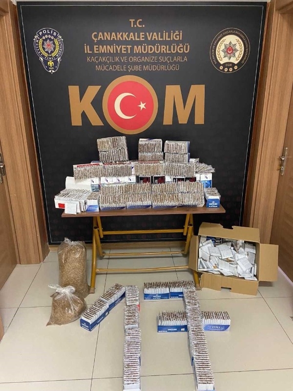 Çanakkale'de, tütün mamülleri ve makaron kaçakçılığının önlenmesine yönelik 3 ayrı adrese düzenlenen operasyonda 57 bin dal doldurma sigara ve 6 kilogram açık kıyılmış tütün ele geçirildi. Olayla ilgili 3 şüpheli gözaltına alındı. Kaçakçılık ve Organize Suçlarla Mücadele (KOM) Daire Başkanlığı tarafından ülke genelinde tütün mamulleri ve makaron kaçakçılığının önlenmesine yönelik eş zamanlı ‘NEFES-2' kod isimli operasyonu çerçevesinde, Çanakkale İl Emniyet Müdürlüğü KOM Şube Müdürlüğü ekiplerince, 3 ayrı iş yerine operasyon düzenledi. Operasyonlarda, 57 bin tane doldurma sigara ve 6 kilogram açık kıyılmış tütün ele geçirildi. Gözaltına alınan şüpheliler, M.G.Ö., S.Ç. ve R.A. haklarında yapılan adli işlem yapıldı. Şüpheliler, M.G.Ö., S.Ç. ve R.A. emniyetteki işlemlerinin ardından savcılık talimatıyla serbest bırakıldı.