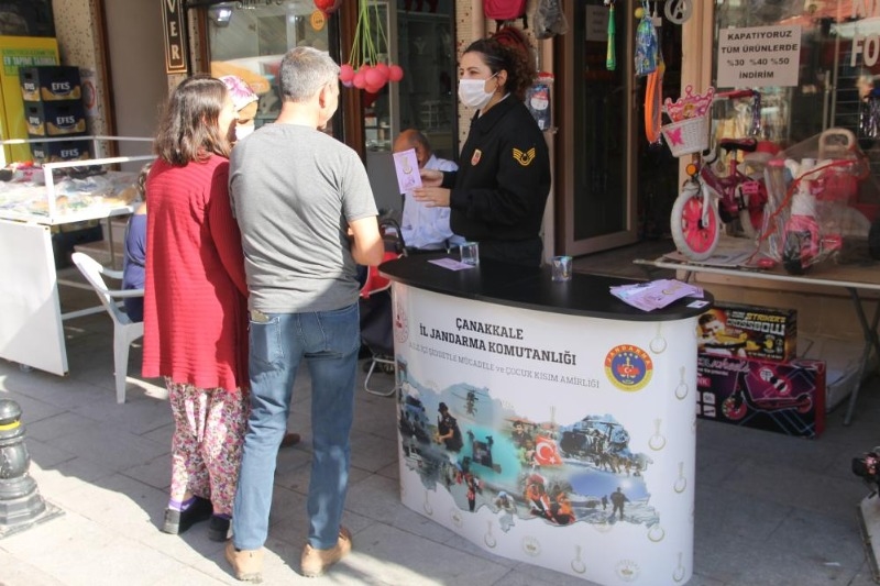 Çanakkale İl Jandarma Komutanlığı ekipleri, 136 kadına aile içi ve kadına karşı şiddetin önlenmesine yönelik bilgilendirme faaliyetleri gerçekleştirdi. Çanakkale İl Jandarma Komutanlığı Aile İçi Şiddetle Mücadele ve Çocuk Kısım Amirliği ekipleri tarafından, 3-5 Kasım tarihleri arasında Biga ilçesinde faaliyet gösteren bir işletmede 40, Ayvacık ilçesinde 96 kadına da aile içi ve kadına karşı şiddetin önlenmesine yönelik bilgilendirmelerde bulunup, Kadın Acil Destek Uygulaması (KADES) uygulamasının da tanıtımı gerçekleştirildi. . Öte yandan, Biga ilçesi Balıklıçeşme köyü ve Ayvacık Korubaşı Köyü ilköğretim okullarında öğrenim gören 47 öğrenciye de güvenli internet kullanımı, internet ortamında dolandırıcılık şekilleri ile zararlı internet sitelerinden kaçınma yöntemleri konularında eğitim verildi.