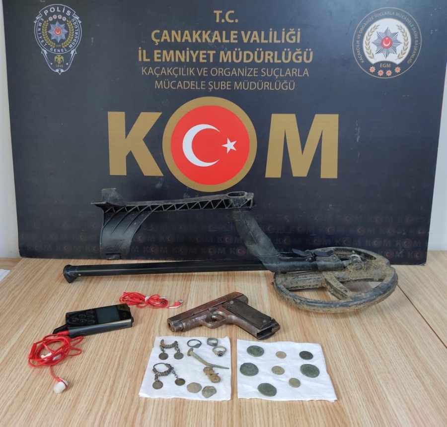 Biga ilçesinde gerçekleştirilen tarih eser kaçakçılığı operasyonunda bir şüpheli gözaltına alındı. Biga ilçesinde 1 Şubat Salı günü, Kaçakçılık ve Organize Suçlarla Mücadele Şube Müdürlüğü ekipleri tarafından M.Ç. isimli şüpheli şahsın evine operasyon düzenlendi. Evde yapılan aramada 8 adet sikke, 4 adet metal obje, 5 adet takı ve süs eşyası, 1 adet metal arama detektörü, 1 adet kazma, 1 adet ses dinleme ünitesi, 2 adet kırmızı renkli kulaklık ele geçirildi. Emniyetteki işlemleri tamamlanan M.Ç. hakkında 2863 SKM suçundan adli işlem yapılırken, savcılık talimatıyla serbest bırakıldı.