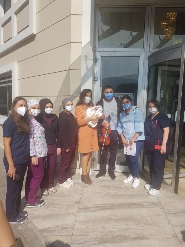 Çanakkale’de 1 kilo olarak dünyaya gelen minik Göksel, sevk edildiği Bursa’dan 2 ayın sonunda 2 kilo 600 gram olarak taburcu edildi. Mutlululuktan ne yapacağını şaşıran müzisyen baba, çocuğunu keman eşliğinde Çanakkale'ye götürdü. Çanakkale’den Bursa’daki Doruk Sağlık Grubu Hastanesine erken doğum sonucu 7,5 aylık 1 kilo olarak sevk edilen Makbule ve Çağlar Adalı çiftinin minik bebekleri Göksel, 2 ayın sonunda 2 kilo 600 gram olarak taburcu oldu. Müzisyen baba Çağlar, çocuğunun sağlıklı bir şekilde taburcu olması durumunda kemanla onu taburcu edeceğinin sözünü yerine getirdi. Herkesin meraklı bakışları karşısında kemanı boynuna alan baba, hastanenin önünde dünyaya gelen ilk çocuğu ve eşiyle unutulmaz bir ana imza attı. Bebeğinin sağlıklı bir şekilde taburcu olmasını kemanıyla çaldığı şarkılarla kutlarken, herkes kendisini uzun süre alkışladı. Adalı ailesi Çanakkale’ye doğru bebekleriyle birlikte mutlu mesut giderken, Yenidoğan Uzmanı Dr. Birgül Mutlu, "Babası müzisyen olduğu için yatışta taburcu olursa kemanını getirip çalma sözü vermişti. Bizde mutluluklarına ortak olduk. Bu sıkıntılı süreçte ekipçe yüzümüzü gülümsettiler. Güzel bir anı bırakarak Çanakkale’ye yolcu ettik. Darısı diğer küçük savaşçılarımın başına" dedi.