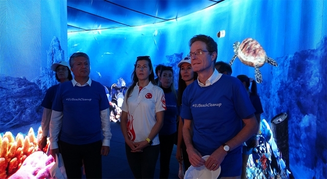 Avrupa Birliği Türkiye Delegasyonu Başkanı Büyükelçi Nikolaus Meyer-Landrut, Çanakkale'de denizlerdeki kirlenmeye dikkat çeken "Dijital Okyanus Tüneli" etkinliğine katıldı. Avrupa Birliği Türkiye Delegasyonu, Avrupa Birliği Bilgi Merkezleri ve Smurfs (Şirinler) işbirliğinde Çanakkale Karina Deniz Kültür Merkezi'nde 23 metre uzunluğunda Dijital Okyanus Tüneli ve sahil temizleme etkinliği düzenlendi. Etkinliğe katılan Avrupa Birliği Türkiye Delegasyonu Başkanı Büyükelçi Nikolaus Meyer-Landrut, anasınıfı öğrencilerinin atıklardan yaptığı çalışmaları inceleyerek, Dijital Okyanus Tüneli'nde canlılar ve denizlerden çıkarılan atıklarla ilgili bilgiler aldı. Büyükelçi Meyer-Landrut, denizlerdeki kirliği dikkat çekerek şunları söyledi: "Denizlerde kirliliğin engellenmesi ve ekosistemin bozulmasının yavaşlatılması konusunda Avrupa Birliği'nin diğer ülkelerinde ve dünyanın birçok noktasında çalışmalar çok öncesinden başlatıldı ve devam etmekte. Denizlerdeki kirlilik bütün dünya için önem arz ediyor. Ancak denizdeki bu kirlilik, bu çöp sadece denizde başlamıyor. Aslında karada başlayan bir kaynak. Dolayısıyla bununla bağlantılı olarak bizler Avrupa Birliği hibesiyle başlatılan ve Avrupa Birliğince kollanmış olan bir projeyi bugün ziyaret etme fırsatımız oldu. Bu proje Çanakkale'de başarı öyküsünü yazmış olan katı atık arıtma tesisleridir. Çanakkale Belediyesi Avrupa Birliği hibesiyle başlamış, daha sonra kendi sağlam adımlarını atmaya devam etmektedir. Ve burada bizler bu projelerle kaynakta kirliliği önlemeye çalışıyoruz. Karada başlayan çalışmalarda tüketimin azaltılmasıyla ve geri dönüşüm döngülerinin de iyi bir şekilde kullanılmasıyla kirliliğin önüne geçmeye çalışıyoruz. Bugün buradaki turumuza başladığımızda ilk temasımız çocuklar doldu. Zira geleceğe olan en önemli mesajlar onlar aracılığıyla olacaktır. Ve bugün daha önceden de burada söylendiği üzere örneğin 2050 yılına gelindiğinde denizlerimizde balıktan çok plastik olacağı söylendi. Bugün itibarıyla denizlerdeki ve dünyada 1 milyon kadar tür aslında yok olmakla karşı karşıya. Yani biyoçeşitlilik konusunda ciddi anlamda bir tehlikeyle karşı karşıya bulunuyoruz" dedi. Çanakkale Belediye Başkanvekili İrfan Mutluay ise, projenin ortağı olduklarından dolayı AB temsilcilerine teşekkür ederek, "Çevremizdeki illere, diğer ülkelere baktığımızda örnek sayılabilecek tesisleri, çevreci yatırımları bir bir hayata geçirdik. Bunun ilk adımını da sabah ziyaret ettiğimiz katı atık depolama tesisini Avrupa Birliği'nin katkılarıyla hayata geçirdik. Bunun devamında da şu anda entegre tesisleri yapmaya çalışıyoruz. Mekanik ayrıştırma, enerji üretimiyle birlikte yüzde 60'lara varan oranda geri dönüşümü sağlamak istiyoruz. Bunun dışında atık suda ileri düzeyde arıtma tesislerini hayata geçirdik. Bunun ödülü olarak barışın kentinde masmavi bir denize sahip olmak istiyoruz. Kentimizde mavi bayraklı plajlara sahibiz. Bunun da Çanakkale halkı için yapmış olduğumuz çevreci yatırımların bir ödülü olduğunu söylemek istiyorum. Bu kirliliğin sebebi aslında kara. Karadaki atıklar, plastikler, evsel atıklar ve sanayi atıkları denizleri ve su kaynaklarımızı kirletiyor. Buradaki biyoçeşitlilik her geçen gün azalıyor. Dünyanın son kullanıcıları bizler değiliz. Etkinlik alanına girdiğimizde çocuklarımızı gördük. Bu etkinlik gençleri, çocukları bilinçlendirme, farkındalık oluşturma ve gelecek adına mesaj verme faaliyeti. Hayalet ağlarla, plastiklerle, evsel, endüstriyel kirlilikle birlikte gerçekten denizel yaşamın, deniz ekosisteminin ve biyoçeşitliliğinin yok olduğuna hepimiz şahitlik ediyoruz" dedi. Milli sporcu Birgül Erken de denizi evi gibi gördüğünü söyleyerek, "Buraya benim evimi kurtarmaya gelmiş bir konuğumuz var. Büyükelçimizin nezdinde bütün bu organizasyonda emeği geçen herkese teşekkür ediyorum. Burada canlandırdığımız kirliliğe ben kendi gözlerimle şahit oluyorum. Bu gerçekten çok acı verici. Geleceğimizin teminatı gençlere dokunduk. Bu etkinlik bu nedenle benim için önemli" dedi. Konuşmaların ardından AB Türkiye Delegasyonu Başkanı Büyükelçi Nikolaus Meyer-Landrut ve Çanakkale Belediye Başkanvekili İrfan Mutluay sanal gerçeklik gözlüğü ile hazırlanan videoyu izledi.