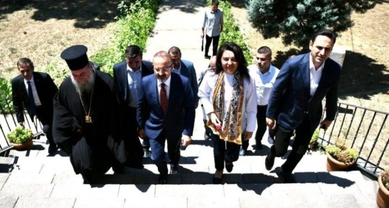 AK Parti Grup Başkanvekili Bülent Turan, Gökçeada Metropolithanesi'ni ziyaret etti. Turan, ziyarette yaptığı konuşmasında, “Rum vatandaşlarımızın tüm haklarına saygı duyuyoruz. Ama aynı saygıyı Yunan makamlarından bekliyoruz. Rum vatandaşlarımız için Gökçeada'mızda kilisemiz var, okulumuz var. Gönül ister ki Atina'da da camimiz olsun” dedi. AK Parti Grup Başkanvekili Bülent Turan, Gökçeada Metropolithanesi'ni ziyaret ederek Gökçeada ve Bozcaada Metropoliti Kyrillos Sykis ile bir araya geldi. Gökçeada'da Türk ve Rum vatandaşların bir arada yaşadığını hatırlatarak Türkiye'nin 85 milyonluk nüfusuyla farklılıkları ile beraber kıymetli bir toplum olduğunu açıkladı. Turan, burada yaptığı açıklamasında, "Bugün Gökçeada'da 500'den fazla Rum vatandaşımız yaşıyor. Onların temsilcisi olan Metropolit Sykis Bey'i ziyaret etmekten büyük keyif aldık. Ev sahiplikleri için teşekkür ediyorum. Toplumumuzun tüm sosyal kesimlerini taleplerini yerinde dinlemek çok kıymetli bizim için. Kendilerinin özel dertleri varsa, toplumlarının sorunları varsa onları çözmeyi bir görev biliyoruz. Biz 85 milyonluk bu ülke içinde eşit vatandaşlar olarak din, dil, ırk farkı gözetmeksizin anayasal bir zemin içinde eşit vatandaşlar olarak yaşamayı bir görev biliyoruz. Toplumumuzun her kesiminin farklı sorunları olabilir. Onları çözmek için yoğun mesai harcıyoruz. Ancak keyifle söylüyorum ki büyük bir medeniyetin temsilcileri olarak Gökçeada'mızda Rum vatandaşlarımız için ilkokulumuz, ortaokulumuz, lisemiz açıldı. Birkaç sene önce sadece 3 olan öğrenci sayısı bugün 56'ları buldu. Köylerimizde Rum okullarımız var. Onlara destek olmaktan büyük keyif alıyoruz" dedi.