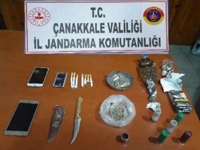 Yenice İlçesinde ikamet eden Ş.K. isimli şahısın uyuşturucu madde imal ve ticareti yaptığı bilgisi üzerine harekete geçen Çanakkale İl Jandarma Komutanlığına bağlı ekipler, uyuşturucu madde arama köpeği ( Roket ) ile operasyon gerçekleştirdi. Operasyonda (25) Gr. Esrar Maddesi,(1) Adet Bıçak, (2) Adet Uyuşturucu Kullanma Aparatı, (7) Adet Uyuşturucu Madde İçerisine Karıştırmak İçin Sigara,- (2) Adet Cep Telefonu, (2) Adet Sigara Folyosu,- (5) Adet Av Tüfeği Mühimmatı,- (1) Adet Uyuşturucu Maddelerin Söndürüldüğü Küllük, ele geçirildi. Adli makamların talimatı gereği ele geçirilen malzemelere el konuldu. Şüpheli Ş.K isimli şahıs ifadesinin alınmasının ardından serbest bırakıldı.