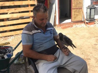 İstanbul Sarıyer’de bir süre esnaflık yaptıktan sonra emekli olan Tanju Demircan, Çan İlçesine bağlı Göle köyündeki bağ evine gitmek için Sarıyer’den aracıyla yola çıkmak üzereyken aracının yanında yavru bir karga ve kedinin olduğunu fark etti. Demircan, Bitkin halde kedi ve martıdan korunmaya çalışan yavru kargayı aracına aldığını belirterek, “ Karganın Kedilere yem olmasına gönlüm razı olmadı. Kargayı Çan ilçesinde Göle köyündeki tarlama getirdim. Tavuk ciğeri ile besledim. Şu an çiftliğinden hiç ayrılmıyor. Adını ‘Zagor’ koydum. Kendisini ismiyle çağırınca hemen yanıma gelir. Ötmeye başlar. Hayvanda olsa sevildiğini biliyor. Arada yaramazlıkta yapıyor. Küçük eşyalarımı ağzı ile alarak değişik yerlere götürerek saklıyor ama çok sevimli bir kuş. Her gün temiz suda banyo yapmasını çok seviyor. Bende ona her gün havuzuna temiz su koyuyorum ve güzelce duş alıyor. Daha sonra güneşte kurulanıyor” diye konuşan Demircan, ‘’İstanbul’a gittiğimde bir hafta boyunca tarlamdan hiç ayrılmıyor burada kalıyor. Geldiğimde sevinç sesleri çıkararak yanımdan hiç ayrılmıyor’’ dedi.