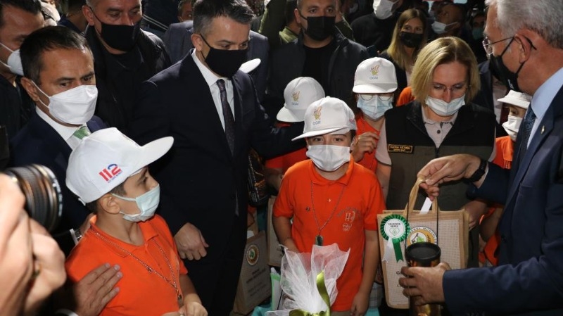 Türkiye’nin ilk yerli ve milli elektrikli traktörünü seri üretime hazır hale getirdiklerini de sözlerine ekleyen Bakan Pakdemirli, “Biz de, son 20 yıldır ülkemiz tarımının gelişmesi ve rekabet gücünün artırılması için önemli destekler sağlayıp, yatırımlar yaparak Ar-Ge altyapımızı güçlendirdik. Bugün; Türkiye’nin, bulunduğu coğrafyanın en büyük ve en güçlü tarımsal Ar-Ge altyapısına sahip ülkesi olduğunu sizlere gururla söylemek istiyorum. Özellikle son 3 yılda yüzlerce yeniliği, çok sayıda teknolojiyi çiftçimizle buluşturduk ve ülkemiz tarımına kazandırdık. Türkiye’nin ilk yerli ve milli elektrikli traktörünü seri üretime hazır hale getirdik. 105 beygir gücünde, 45 ila 55 dakika arası yüzde 100 şarj olabilen ve 8 kat daha az yakıt tüketimi ile çiftçilerimizin maliyetleri yüzde 95 düşürecek olan elektrikli traktörümüzün inşallah seri üretimine önümüzdeki yılın Ocak ayında başlıyoruz. Önümüzdeki hafta lansmanını yapacağımız Elektronik Hayvan Takip Sistemimiz, yani diğer adıyla Elektronik Küpe ülkemizin milli sermaye ve milli Ar-Ge ile geliştirilen ilk hayvan takip sistemi. Sistem sayesinde; büyükbaş hayvanların takipleri, sanal karantina, kızgınlık dönemleri ve beslenme yapıları yakından takip edilecek. Böylece hayvancılıkta BİG DATA’ya ulaşmış olacağız. Yine bu çalışmalarımızın yanı sıra, E-tarım Portalı, Tarım Orman Akademisi, akıllı tarım uygulamaları, gezer sağım makinası ve otonom ilaçlama makinaları gibi birçok teknolojiyi tarım ve hayvancılık sektörüyle buluşturduk ve buluşturmaya devam edeceğiz. Ülkemiz tarımına değer ve vizyon katmak için dün olduğu gibi bugün de, yarın da, tüm imkanlarımızı seferber ederek, var gücümüzle çalışmalarımıza devam edeceğiz” şeklinde konuştu. Yapılan konuşmaların ardından fuara katkı sunan iş insanlarına plaketleri takdim edildi.