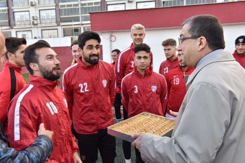Çan Belediye Başkanı Bülent Öz, akşam idmanında Çanspor takım ve ekibine sürpriz bir ziyaret gerçekleştirdi. Takım ve teknik ekiple sohbet ettikten sonra baklava ikramında bulunan Başkan Bülent Öz, “Her zaman olduğu gibi bu hafta oynanacak müsabaka öncesinde de takım çok sıkı çalışıyor. Bizde ‘her zaman destek’ sloganımızla sporcularımızın yanında olarak onlara baklava ikram ettik” dedi.