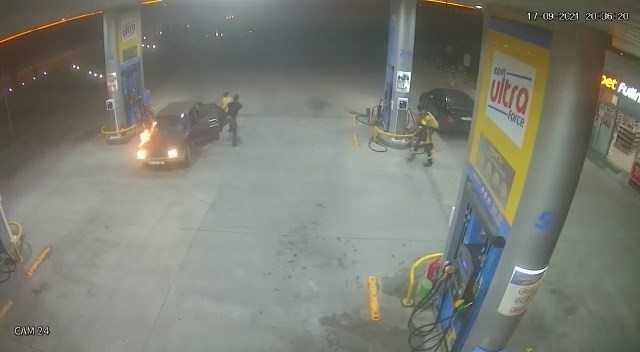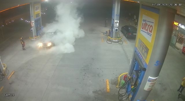 Çanakkale’de bir benzin istasyonundan yakıt aldıktan sonra gitmeye hazırlanan otomobil alev aldı. Araç sürücüsü, arka koltukta bulunan kadın ile kucağındaki çocuğunun can havliyle kaçtığı anlar güvenlik kamerası görüntülerine yansıdı. Olay dün akşam 20.30 sıralarında Çanakkale- İzmir karayolunda bulunan bir benzin istasyonunda meydana geldi. Yakıt pompasının yanına yaklaşan ve dolum işlemini tamamlayan sürücü, gitmeye hazırlanırken bir an da otomobilinin motor kısmında alevler çıkmaya başladı. Araçtan inen sürücü ile arka koltukta bulunan kadın, kucağındaki çocuğunu alarak can havliyle kaçmaya başladı. Arabanın alev aldığını gören benzin istasyonunda görevli iki kişi, yangın söndürme tüpleriyle yangına müdahale etti. Yangının kısa sürede söndürülmesiyle facianın eşiğinden dönüldü. Korku dolu o anlar da saniye saniye güvenlik kamerası görüntülerine yansıdı.