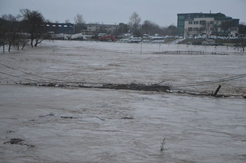 Yoğun kar yağışının beklendiği Çanakkale'nin Biga ilçesinde, dün akşamdan beri yağan yağmur, hayatı olumsuz etkiledi. Kocabaş Çayının taşması sonucu onlarca araç sular altında kaldı. İstinat duvarlarının yıkıldığı çayın etrafındaki araçların çekilmesi için Biga Belediyesi ve trafik ekipleri gece boyunca anonslar yaptı.