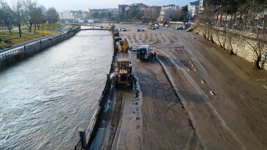 Taşkın bölgesindeki Biga Belediyesi ekiplerinin çalışmalarını yerinde inceleyen Biga Belediye Başkanı Bülent Erdoğan, “Öncelikle, tüm Bigalı hemşerilerimize geçmiş olsun, rabbim tekrarını yaşatmasın. Çarşamba günü bölgemizde yaşanan yoğun yağıştan dolayı, ilçemizin içinden geçen Kocabaş Çayı'mız ve yan kolları olan Uzunsu ve Asmalı derelerinde taşkın yaşandık. Taşkından kaynaklı temizlik ve hasar tespit çalışmaları tüm ekip ve gayretlerimizle gerçekleştiriyoruz. Can kaybının olmamasından dolayı rabbimize şükrediyoruz. Gece saatlerinden itibaren belediye personellerimiz hem çiftliklere, hayvan damlarına müdahale ederken, bir yandan da bulunmuş olduğumuz alanda park etmiş olan araçların tahliyesiyle alakalı çalışmamız başladı. Bu görmüş olduğunuz alanda yaklaşık 2 bin 500 aracımız park edebiliyor. Çarşamba günü bizim pazarımızdı ve burası tam doluydu. Gece saatlerinde başlayan tahliye işlemlerimiz sabah saatlerine kadar devam etti. Maalesef sahiplerine ulaşamadığımız ya da ulaştığımız halde duyarsız kalan bazı vatandaşlarımızın araçları bu alanda kaldı ve burada saat 03.00’e kadar burada hiç su yoktu. Sabaha karşı saat 03.00’ten sonra suyun gelmesiyle birlikte araçlara müdahale şansımız kalmadı. Araçlarla ilgili tam sayı alamadık emniyet birimlerimizde çalışmalarını sürdürüyorlar. Rabbim tekrarını yaşatmasın. 2014 yılında ihalesi yapılan ve 2017’de tamamlanan bir ıslah projesi, o zaman devlet yetkililerimizde bu Kocabaş Çayı’nın ne kadar riskli olduğunu, önem arz ettiğini görmüş ve hızlıca buranın ihalesini yapıp, Biga’mıza bu güzel eseri kazandırmış. Bu ıslah çalışması belki de Çarşamba günü çok büyük bir facianın da önüne geçmiş oldu. Sevindirici olan cana bir sıkıntı olmaması. Hayvan telefinin olmaması bu da afetin güzel tarafından bakmamız gerektiğini düşündüğümüz bir durum” diye konuştu. Bölgede temizlik ve hasar tespit çalışmaları devam ediyor.
