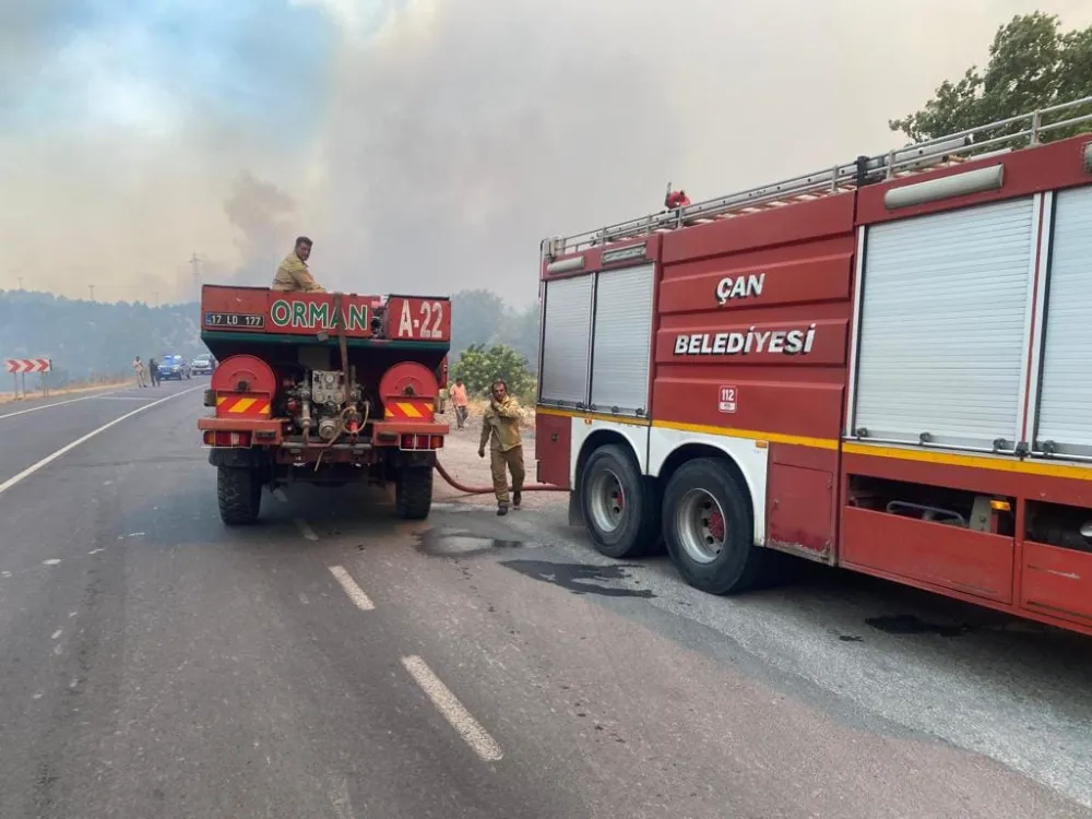 Çan Belediyesi ekipleri yangın bölgesinde