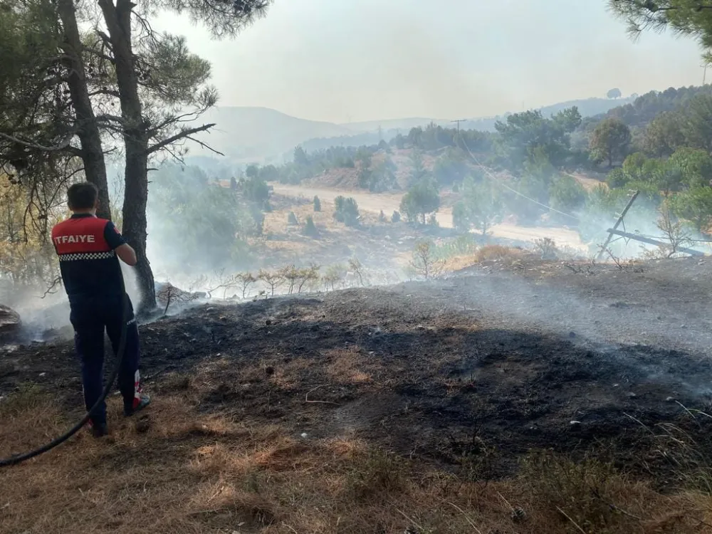 Çanakkale merkeze bağlı Dörtyol köyü yakınlarında orman yangınına ekipler havadan ve karadan müdahaleye ediyor. Çanakkale merkeze bağlı Dörtyol köyü yakınlarında orman yangını çıktı. Orman Bölge Müdürlüğüne bağlı ekipler yangına havadan ve karadan müdahaleye başladı. Yangın rüzgarın da etkisiyle daha da büyümeden ekipler, kontrol altına almak için yoğun mücadele veriyor. Çan Belediyesi İtfaiye ekipleri yangın bölgesinde yoğun mücadeleye devam ediyor.