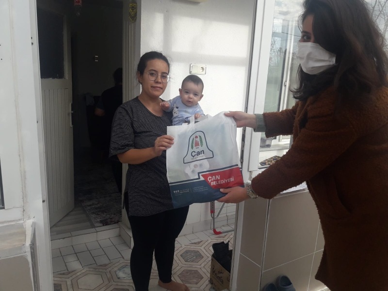Çan Belediyesi yeni bebek sahibi olan ailelerin sevincine ortak oluyor