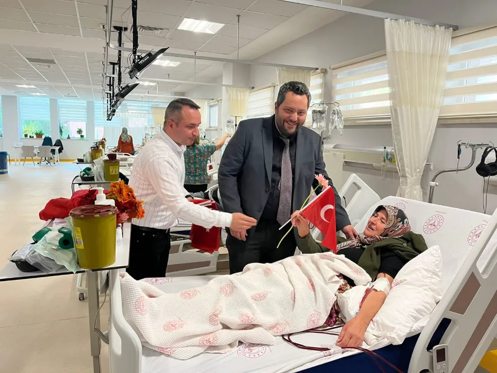 Çan Devlet Hastanesi bayraklarla donatıldı, hasta ve çocuklara bayrak dağıtıldı. Türkiye Cumhuriyeti’nin kuruluşunun 100. yıl dönümü ve 26 Ekim Hasta Hakları Günü’nün aynı hafta içerisinde kutlanması dolayısıyla Çan Devlet Hastanesine gelen hastalara hakları hakkında bilgiler verilerek, ikramlar yapıldı. Çan Devlet Hastanesinde yatan yetişkin hastalara çiçek ile Türk Bayrağı, çocuk hastalara ise Türk Bayraklı balonlar dağıtıldı. Çan Devlet Hastanesi Başhekimi Uzm. Dr. Hasan Alpay, “26 Ekim Hasta Hakları Günü ile ilgili olarak toplumun farkındalığını ve Hasta Hakları Biriminin anlaşılırlığını artırmak amacıyla Çan Devlet Hastanemizde halkımıza bilgilendirme yapmak ve farkındalık oluşturma amacı ile konunun önemi stant açılarak aktarıldı. Aynı zamanda hasta hakları birimimiz ve hastane yönetimimiz tarafından hastanemizde yatan ve tedavi gören hastalarımızın bir kısmı yerinde ziyaret edilerek hem hasta hakları günü kutlandı, hem de Cumhuriyetimizin 100.yılı vesilesiyle kendilerine şanlı Türk Bayrağımız takdim edildi. Cumhuriyetimizin ilanının 100.Yıldönümüne girerken; Çan Devlet Hastanesi çalışanları olarak hep daha iyiyi hedefleyen bir tutumla ve bu anlayışı hiç kaybetmeden yolumuza devam etmekteyiz” dedi.