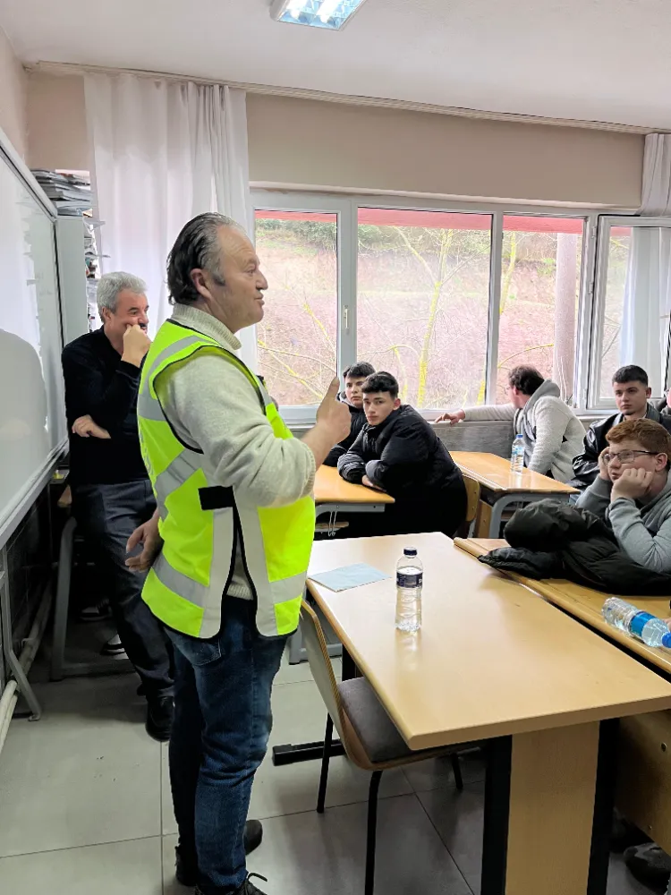 Çan ilçesinde, İlçe Emniyet Müdürlüğüne bağlı trafik ekipleri, geleceğin ustaları ve teknisyen adaylarını trafik kuralları konusunda bilgilendirdi. Trafik bilincini artırmak amacıyla düzenlenen eğitimler kapsamında, Mesleki Eğitim Merkezi öğrencilerine yönelik geniş kapsamlı trafik güvenliği ve motor kullanımı semineri verildi. 442 öğrencinin katıldığı seminerde kask kullanımının hayati önemi, koruyucu ekipmanların seçimi ve trafikte farkındalık konuları işlendi. Trafik polisleri, yaşanmış kazalardan örnekler vererek kurallara uymanın bir tercih değil, zorunluluk olduğunu hatırlattı. Ekipler, trafik güvenliğini sağlamak ve kaza oranlarını minimize etmek adına bu tür eğitim faaliyetlerinin eğitim-öğretim yılı boyunca devam edeceğini belirtti.