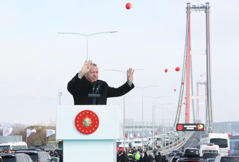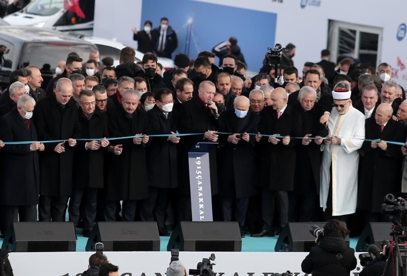 1915 Çanakkale Köprüsü’nün açılış kurdelasını kesen Cumhurbaşkanı Recep Tayyip Erdoğan, Türkiye’de son 20 yılda kamu özel sektör işbirliğiyle ulaşımda 37,5 milyar dolarlık yatırımı hayata geçirdiklerini belirterek, “Kendi kasamızdan değil dışarıdan getirmek suretiyle bunu başardık. Bu dönemdeki projelerin milli gelirimize katkısı 395 milyar dolardır. Üretime katkısı 838 milyar dolardır. İstihdama katkısı 1 milyon kişidir. Şayet aynı yatırımları sadece bütçe kaynaklarıyla yapmaya kalksaydık 10’larca yıl bekleyecektik. Biz burada sadece Boğaz'ın iki yakası arasındaki bir köprüyü hizmete açmıyoruz. Türkiye’nin bugünü ile geleceği arasında giderek daha da güçlenen bir kalkınma köprüsü kuruyoruz. Biz bugün burada Türkiye’nin büyüme, güçlenme, gelişme bölgesinde ve dünyada huzurun, refahın, adaletin, hakkaniyetin sembolü haline gelme vizyonunun yeni bir halkasına kavuşuyoruz. Kamu özel sektör işbirliğine karşı çıkanların, ülkemizin kalkınması için gereken yatırımlar konusunda ne önerileri olduğunu sorun. Ne derece riyakar, hazırlıksız oldukları ortaya çıkacaktır” dedi.