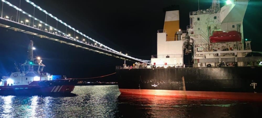 Çanakkale Boğazı’nda makine arızası yapan Liberya bandıralı buğday yüklü gemi, Lapseki açıklarındaki Şevketiye açıklarına demirletildi. Rusya'nın Novorossiysk Limanı'ndan Cibuti'ye giden 225 metre uzunluğundaki 40 bin 609 grostonluk Liberya bayraklı ‘Fortune Trader’ adlı buğday yüklü kargo gemisinde Gelibolu açıklarında makine arızası meydana geldi. Arıza nedeniyle Çanakkale Boğazı çift yönlü olarak transit gemi geçişlerine kapatıldı. Gemide bulunan kılavuz kaptan, durumu telsizle Çanakkale Boğazı Gemi Trafik Hizmetleri Müdürlüğüne (VTS) bildirdi. Olay yerine Kıyı Emniyet Müdürlüğüne ait ‘Kurtarma-4’, ‘Kurtarma-15’ ve ‘Nazım Tur’ römorkörleri sevk edildi. Buğday yüklü gemi römorkörler tarafından yedeklenip Şevketiye demir bölgesine götürüldü. Gemi arızasının giderilmesi için çalışmalar sürüyor.