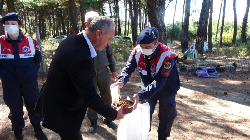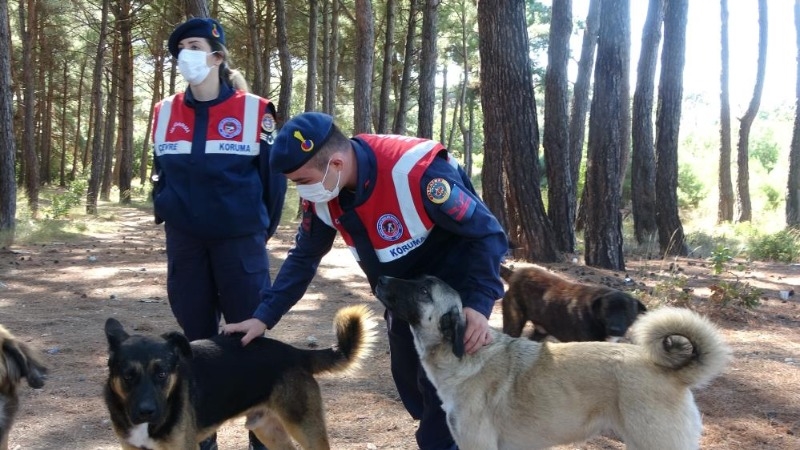 Çanakkale Doğa Koruma ve Milli Parklar (DKMP) Şube Müdürlüğü ile İl Jandarma Komutanlığı Çevre, Doğa ve Hayvanları Koruma timi (HAYDİ) ekiplerince, 4 Ekim Dünya Hayvanları Koruma Günü dolayısıyla sokak köpeklerine mama verildi. Çanakkale merkeze bağlı Güzelyalı köyünde sokak köpeklerinin korunup, beslendiği merkezde Çanakkale DKMP Şube Müdürlüğü ile Jandarma HAYDİ ekiplerince 150 kilogram mama dağıtıldı. Konuyla ilgili gazetecilere açıklama yapan DKMP Çanakkale Şube Müdürü Ozan Hacıalioğlu, “Bugün 4 Ekim Dünya Hayvanları Koruma Günü. Bu güne özel bir farkındalık oluşturmak için buradayız. Biz aslında her gün sokak hayvanlarının beslenmelerini takip ediyoruz. Bu hayvanlar bazen sahipsiz olarak tarif edilir ama aslında bunların bir sahibi var. Sahibi devletimiz. Sokak hayvanlarımız için kanun da çıkarılmış durumda. Bunların iş ve işleyişlerini takip ediyoruz. Polis ve Jandarma HAYDİ ekipleriyle koordineli çalışıyoruz. Belediyeler de desteklerini esirgemiyorlar bizden. Bugün de yemleme faaliyetini yapacağız” dedi.