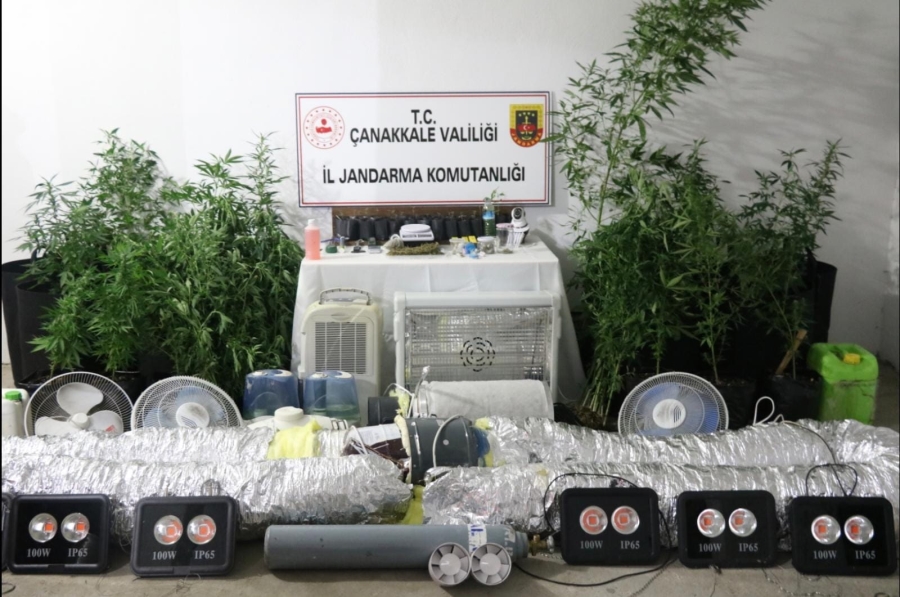 Ayvacık ilçesinde Jandarma ekipleri tarafından düzenlenen operasyonda çok sayıda uyuşturucu madde ele geçirilirken 2 şüpheli de gözaltına alındı. Çanakkale İl Jandarma Komutanlığı ekipleri tarafından, Çanakkale'nin Ayvacık ilçesinde 7 Eylül tarihinde uyuşturucu madde yetiştirildiği tespit edilen bir eve operasyon düzenlendi. Operasyonda, 67 kök kenevir bitkisi, 12 kök skunk, 75 gram esrar, 5 gram kenevir tohumu, 2 adet hassas terazi, video kamera, 4 adet Ph ölçer cihazı, aydınlatma, havalandırma ısıtma ve yalıtım malzemeleri ele geçirildi. 2 şüphelinin evlerinin içerisinde uyuşturucu yetiştirmek amacıyla ısı, ışık, yalıtım ve kenevir kurutma düzeneği kurdukları tespit edildi. Gözaltına alınan şüphelilerin jandarmadaki işlemleri devam ediyor.