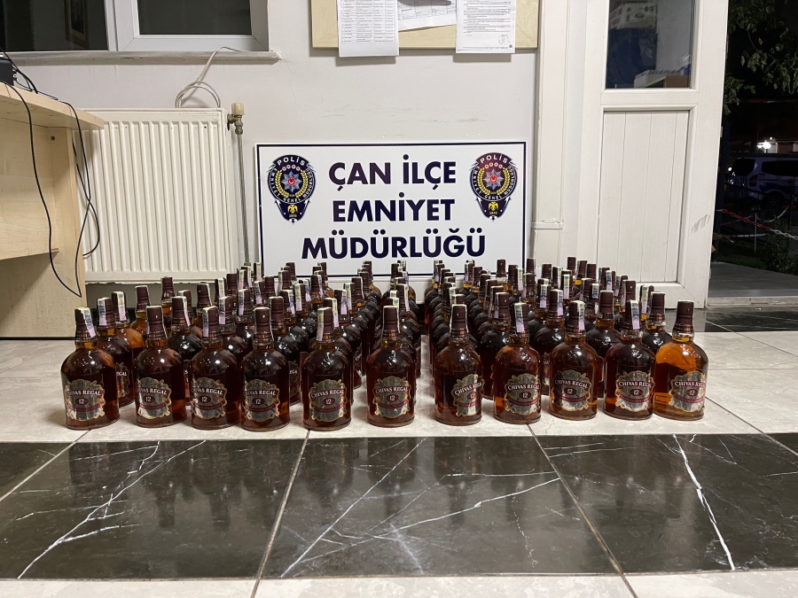 Çan ilçesinde düzenlenen kaçak içki operasyonunda 100 adet kaçak viski ele geçirildi. Çan İlçe Emniyet Müdürlüğü ve Çanakkale Kaçakçılık ve Organize Suçlarla Mücadele (KOM) şube müdürlüğü ekipleri tarafından ilçenin Karşıyaka mahallesinde şüpheli görülen araç durduruldu. O. A. Ö. isimli şahsa ait 17 ABN 171 plakalı araçta yapılan aramada CHIVAS REGAL ibareli 1’er litrelik 100 adet kaçak viski ele geçirildi. Kaçak içkilere el konulurken, konuyla ilgili adli işlem başlatıldı.