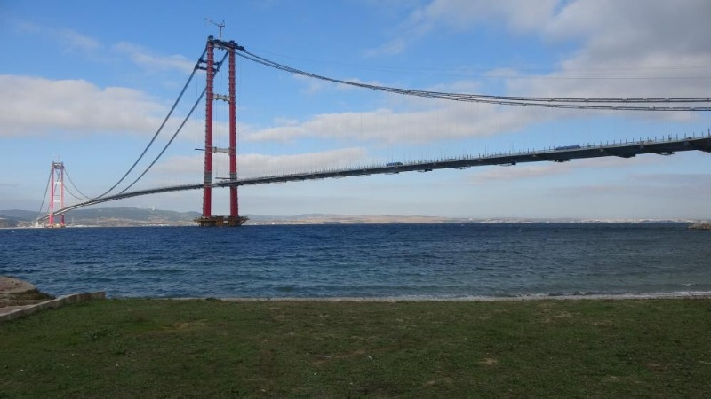Dünyanın en büyük asma köprüsü unvanına da sahip olan köprünün ayakları 318 metrelik yüksekliğiyle 18 Mart Çanakkale Deniz Zaferi’ni simgeliyor. Cumhurbaşkanı Recep Tayyip Erdoğan tarafından 18 Mart 2017’de temeli atılan ve Çanakkale’nin Lapseki ilçesine bağlı Şekerkaya ile Gelibolu’nun Sütlüce mevkii arasında yapımı süren 1915 Çanakkale Köprüsü’nün ayakları 16 Mayıs Cumartesi günü Cumhurbaşkanı Recep Tayyip Erdoğan’ın video konferansla katıldığı törenle tamamlanmış ve 32 bloktan oluşan köprünün ayak yüksekliği 318 metreye ulaşmıştı.