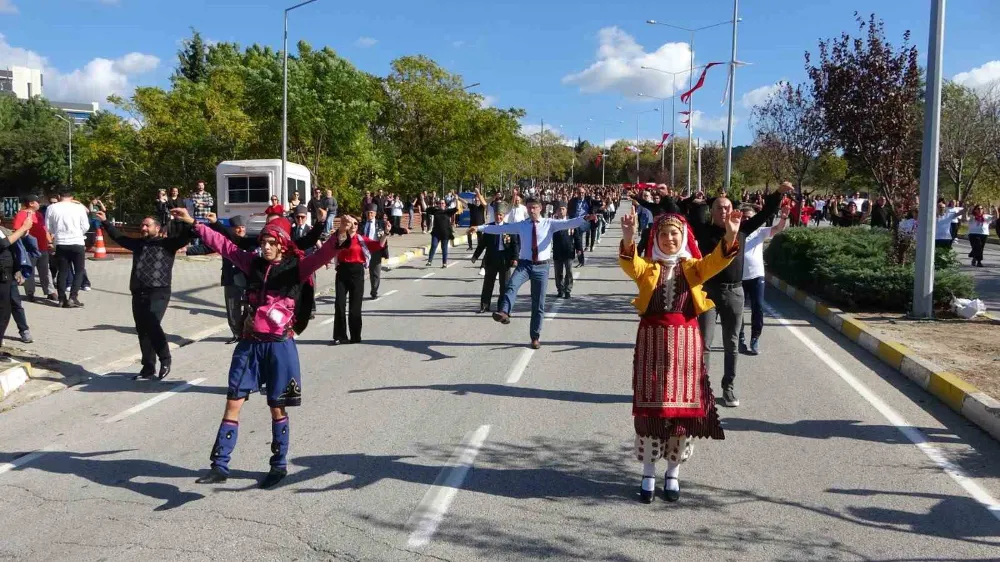 Cumhuriyet’in 100’üncü yıl dönümü nedeniyle Çanakkale’de üniversite öğrencilerinin de bulunduğu 2023 kişi zeybek oynadı. Çanakkale’de Cumhuriyet’in 100’üncü yıl dönümü olan 29 Ekim Cumhuriyet Bayramı etkinlikleri çerçevesinde Terzioğlu Yerleşkesi içinde üniversite öğrencilerinin de bulunduğu 2023 kişi zeybek oynadı. Etkinlik sorumlusu Deniz Ünver, “Cumhuriyet’imizin 100’üncü yılı çerçevesinde üniversitemizin içerisinde 2023 öğrenciyle birlikte öğrencilerimizle, hocalarımızla, yönetimimizle, rektörümüzle beraber bugün bir rekora imza atacağız. Cumhuriyet’in coşkusunu içimizde hissederek, böyle bir proje hazırladık. Çanakkale yöresi zeybeğiyle, Çanakkale yöresi müzikleriyle 2023 kişiyle bugün burada hep beraber oynayacağız. Hep beraber Cumhuriyet’i kutlayacağız. Üniversiteler içerisinde 2023 kişilik bir ekip ilk defa bugün sahnelenecek. Cumhuriyet’imizin 100’üncü yılına yakışacağını düşünüyoruz” dedi.