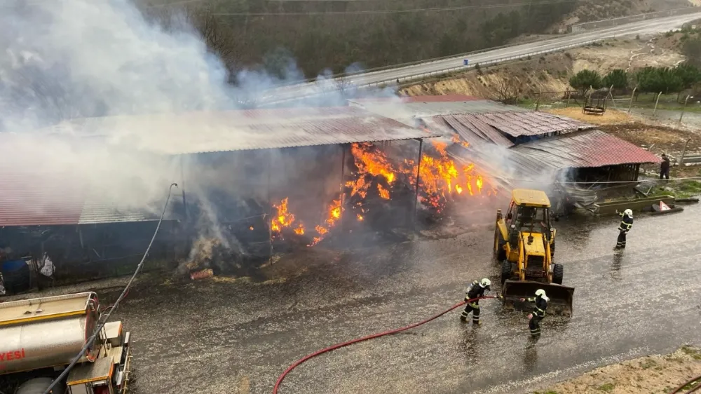 Dama yıldırım düşmesi sonucu 2 bin balya saman yandı
