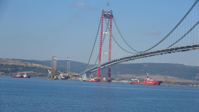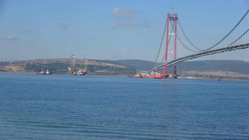 Dev platform 57 metre suya batırılarak 1915 Çanakkale Köprüsü altından geçti
