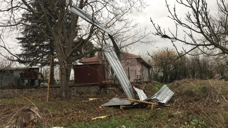 Çan ilçesine bağlı Büyükpaşa köyünde şiddetli esen fırtına bir evin çatısını uçurdu. Çan ilçesinde etkisini sürdüren fırtına, ilçeye 10 kilometre uzaklıkta bulunan Büyükpaşa köyünde Fatma Erol’a ait evin çatısını uçurdu. Fırtınanın etkisi ile çatıdan kopan saç plakalar yan tarafta bulunan boş arsaya düşerken, bazı parçalar ise ceviz ağacında asılı kaldı. Evin saç çatısının yarısı, güneş enerjili sıcak su tankı ve uydu antenini uçuran fırtına maddi hasara sebep oldu. Evinde tek başına yaşayan Fatma Erol , “Fırtınadan evimin çatısı uçtu, yardım bekliyorum. Kendi başıma yaşıyorum” dedi.