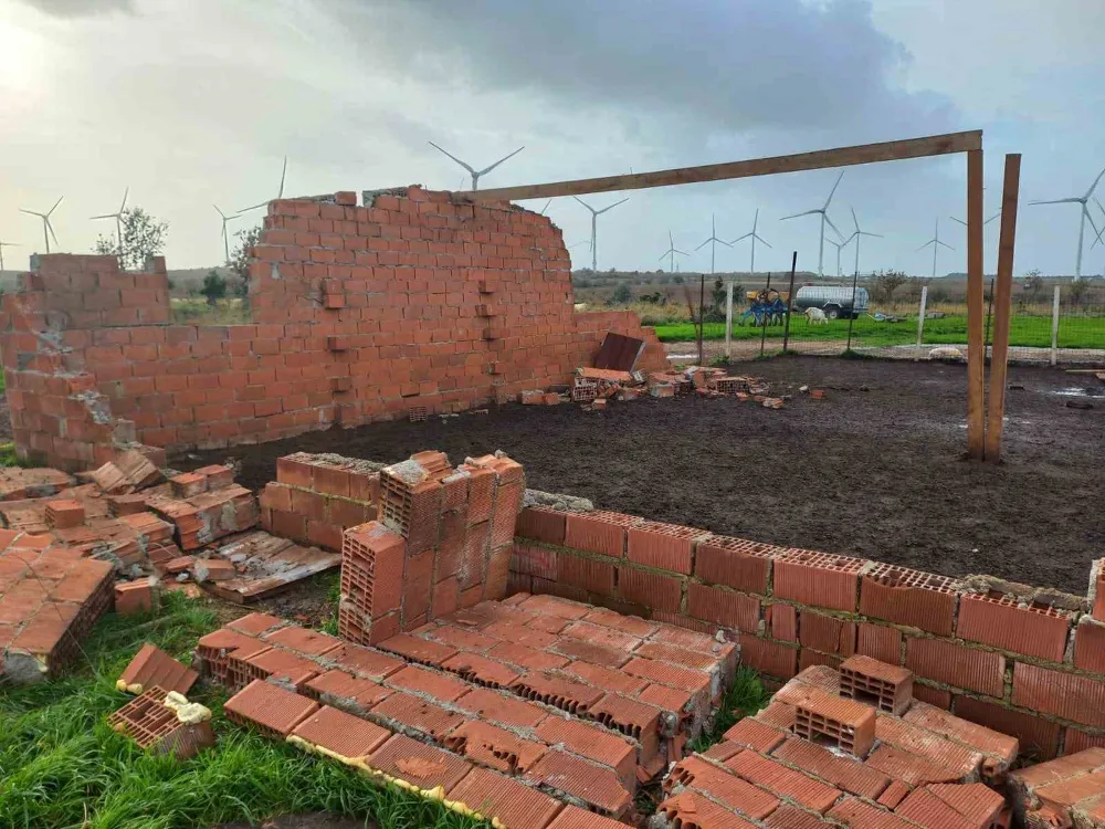 Ezine ilçesine bağlı Üvecik köyünde, 130’a yakın küçükbaş hayvanın bulunduğu ağılın çatısı fırtına nedeniyle uçtu. Meteorolojinin Çanakkale için fırtına ve sağanak yağış uyarısının ardından il merkezinin yanı sıra Ezine ilçesinde de fırtına ve sağanak yağış etkili oldu. İlçeye bağlı Üvecik köyünde Mustafa Köroğlu’na ait küçükbaş hayvanların bulunduğu ağılın çatısı fırtına nedeniyle uçtu. Ezine İlçe Tarım ve Orman Müdürlüğü ekipleri hasar tespiti için incelemelerde bulundu. Jandarma ekipleri olay yerinde incelemelerde bulunarak tutanak tuttu.