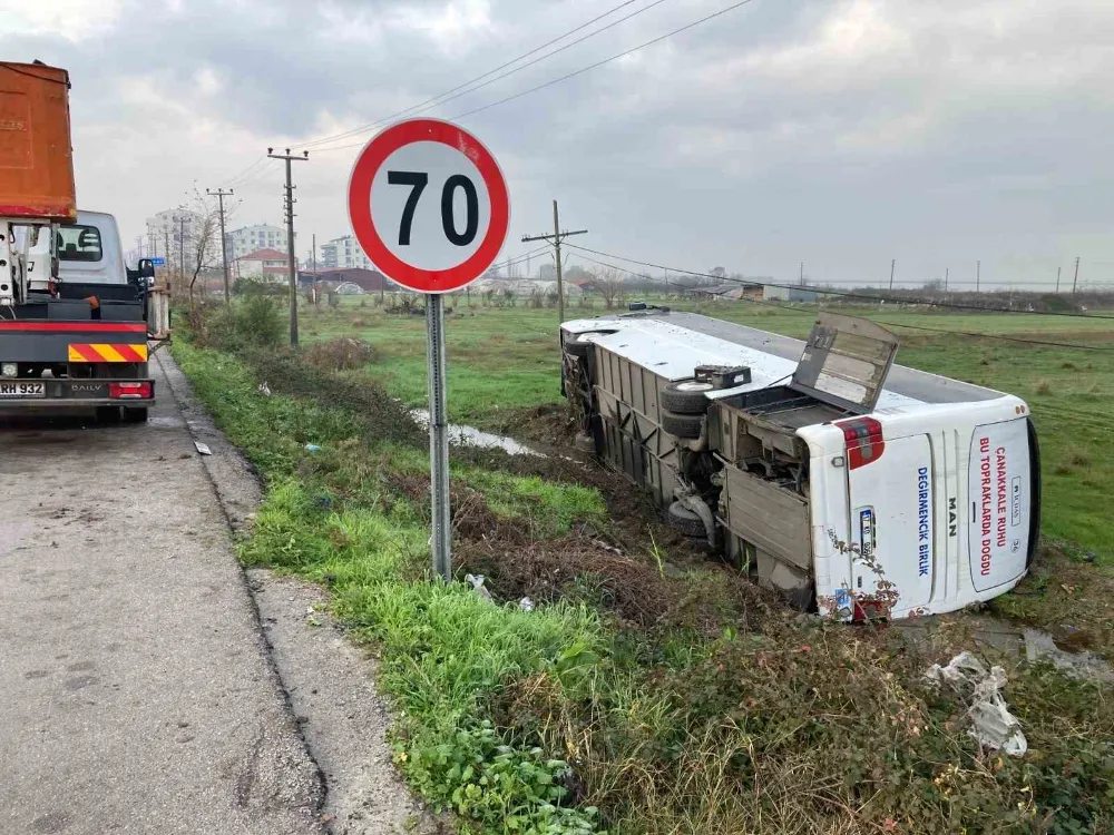 Lapseki ilçesinde İÇDAŞ işçilerini taşıyan otobüs şarampole yuvarlandı. Kazada 5 işçi yaralandı. Kaza dün sabah saat 09.15 sıralarında Lapseki ilçesine bağlı Çardak beldesinde meydana geldi. Biga ilçesinden Çanakkale’ye seyir halinde olan İÇDAŞ işçilerini taşıyan 17 KD 006 plakalı otobüs Çardak Beldesi yakınlarında nedeni henüz belli olmayan bir şekilde yoldan çıkarak şarampole yuvarlandı. Yan yatan otobüsteki 5 işçi hafif şekilde yaralandı. Kazayı gören diğer sürücüler durumu polis, jandarma ve sağlık ekiplerine bildirdi. Olay yerinde sağlık ekiplerinin müdahalesinin ardından yaralılar Lapseki Devlet Hastanesinde tedavi altına alındı. Yaralıların hayati tehlikelerinin bulunmadığı öğrenildi. Jandarma kazayla ilgili inceleme başlattı.