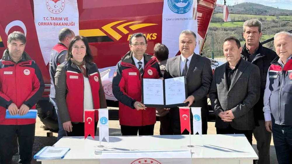 Çan ve Biga ilçelerinde bulunan Çan Süt Üreticileri Birliği ve S.S. Biga Örtülüce Tarımsal Kalkınma Kooperatifine katı gübre dağıtma makinaları teslim edildi. Tarım ve Orman Bakanlığı tarafından yürütülen ‘Türkiye İklim Akıllı Ve Rekabetçi Tarımsal Büyüme Projesi (TUCSAP)’ çerçevesinde ‘Su Kirliliği ve Sera Gazı Emisyonları Üzerindeki Hayvansal Üretimden Kaynaklanan Baskıların Azaltılması" projesi ile hayvansal üretim yapan işletmelerde gübre yönetiminin sağlanması amacıyla gübre depoları ve ortak tarım makinası kurulumu yapılacak. Hayvancılık işletmelerinin hayvansal gübre yönetimi altyapılarının geliştirilmesi ve hayvansal gübre yönetimi konusunda çiftçilerin uygulamalarını desteklemek, ortak tarım makineleri oluşturmak amacı ile Çanakkale’de ise Çan Süt Üreticileri Birliği ve S.S. Biga Örtülüce Tarımsal Kalkınma Kooperatifine proje çerçevesinde ilk etapta birer adet 8 metreküp kapasiteli katı gübre dağıtma makinası teslimi gerçekleştirildi. Ardından proje ile ileriki dönemlerde çiftçi örgütlerine birer adet; 8-10 metreküp kapasiteli sıvı hayvansal gübre enjeksiyon makinası, 8-10 metreküp kapasiteli sıra arası sıvı hayvansal gübre enjeksiyon makinası, mekanik anıza doğrudan ekim makinası, pnömatik anıza doğrudan ekim makinası teslimatları gerçekleştirilecek. Ortak tarım makina parkının bütçe tutarı yaklaşık 10 milyon lira.