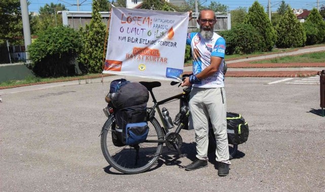 Oğlunu beyin tümöründen kaybeden Kemal Yücel, kök hücre nakli ve organ bağışına dikkat çekmek için bisikleti ile 35 şehir gezerek 5 bin kilometre pedal çevirdi. 9 yıl önce 6 yaşındaki oğlunu beyin tümöründen dolayı kaybeden Kemal Yücel (44), Kök hücre nakli ve organ bağışına dikkat çekmek için bisikletiyle 10 Ağustos tarihinde Adana'dan yola çıktı. Yola çıktığı günden bu yana başta Doğu ve Güneydoğu Anadolu bölgesi başta olmak üzere 35 şehri dolaşan Kemal Yücel toplamda ise 5 bin kilometre pedal çevirdi. ‘Her pedal bir umut olsun' adını verdiği proje çerçevesinde Yücel, gittiği şehirlerde hastaneleri ziyaret ederek tedavi gören çocuklara hediyeler veriyor. Yücel, bisiklet turunu hayatını kaybeden oğlu Umut'un doğum günü olan 10 Ekim tarihinde oğlunun mezarı başında bitirecek. Düzenlediği bisiklet turunun amacından bahseden Kemal Yücel, “Kök hücre ve organ bağışı konusunda toplumsal duyarlılığı arttırmak amacıyla 10 Ağustos tarihinde Adana'dan yola çıktım. Doğu ve Güneydoğu Anadolu bölgesini turladım. Karadeniz üzerinden İstanbul'a ve ardından da Çanakkale'ye ulaştım. Her pedal bir umut olsun adını verdiğim bisiklet turumda amacım insanlara kök hücre ve organ bağışının amacını anlatmak ve donör kazanımı elde etmek. Hastanelerde tedavi gören çocuklarımızı ziyaret ederek, onların yüzlerinde tebessüm oluşturabilmek için oyuncak hediye ediyorum. Geçtiğimiz günlerde İstanbul'da bir hastanede 500'üncü kemik iliği nakli gerçekleştirildi. Bu 500 rakam değil 500 ayrı hayat, 500 ayrı çocuk demektir. Amacım farkındalık oluşturarak nakil bekleyen çocuklarımızın hayatta kalabilmesi” şeklinde konuştu.