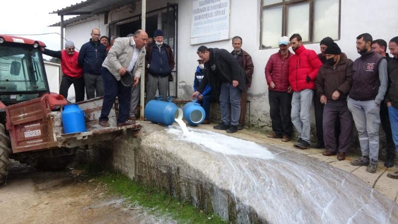 Çanakkale’de süt üreticiliği yapan çiftçiler, mandıracıların koyun ve keçi sütlerinin fiyatlarını ucuza almak istemelerine tepki göstererek, 200 kilogram sütü yere döktüler. Bayramiç ilçesi Söğütgediği köyündeki Süt Toplama Merkezi önünde bir araya gelen süt üreticileri artan maliyetlere rağmen sanayicilerin sütün litresini ucuza almalarına tepki gösterdiler. Çanakkale’de 5 bin ailenin küçükbaş hayvan yetiştirdiğini bu 5 bin ailenin 550 bin hayvanla üretim yaptığına dikkat çeken Çanakkale İli Damızlık Koyun Keçi Yetiştiricileri Birliği Başkanı Doç. Dr. Ahmet Ferhan Savran, “Bugün burada bir farkındalık oluşturmak için toplanmış bulunuyoruz. Malumunuz, sezonumuz başladı. Özellikle Çanakkale’de koyun, keçi sütünün önemini belirtmemiz gerekiyor. Biliyorsunuz Ezine’nin peyniri var ve bunun marka değerini korumak için biz üreticiler süt fiyatlarındaki geçen yıla oranla daha düşük fiyatlara bile alamıyoruz. Küçükbaş hayvan yetiştiricileri olarak 5 bin aileden bahsediyoruz. Bu 5 bin aile yaklaşık 550 bin hayvanla üretim yapıyor ve biz bu üretimi yapmak için sürekli bir çaba içerisindeyiz” dedi.