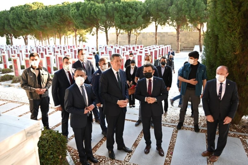Çanakkale'ye temel atma, açılış töreni ve bir dizi programlar için gelen Milli Eğitim Bakanı Ziya Selçuk Çanakkale Şehitler Abidesi'ni ziyaret etti. Temsili şehit mezarlıklarına karanfil bırakan Bakan Selçuk, daha sonra Meçhul Asker kabri önünde tüm şehitler için dua etti.