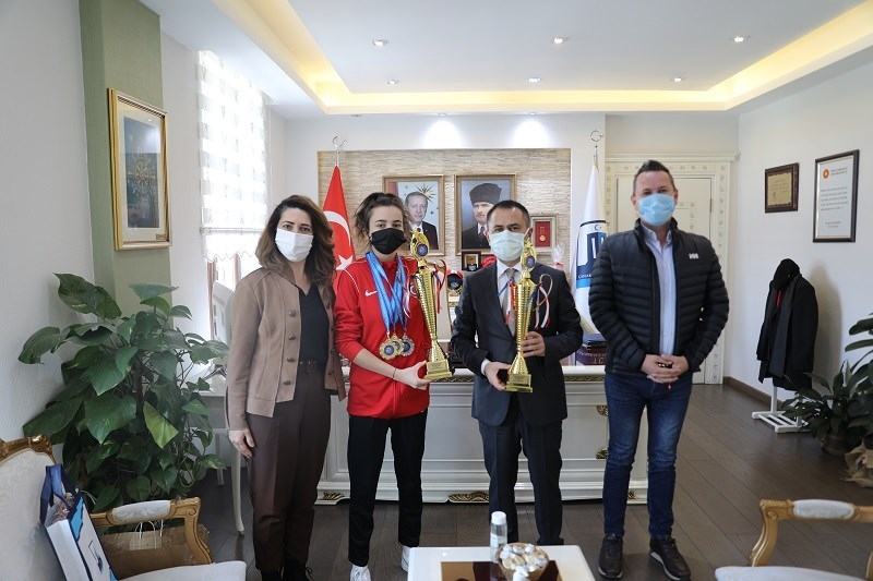 Vali İlhami Aktaş, Çanakkale Merkez Tenis Kulübü İşitme Engelli Milli Sporcu Naz Albayrak’ı makamında kabul etti. Milli Sporcu Naz Albayrak’ın annesi Nurhan Albayrak ve Babası Gencay Albayrak’nın da bulunduğu ziyarette Vali İlhami Aktaş, Türkiye İşitme Engelliler Federasyonu’nun 3-4 Mart 2022 tarihinde düzenlemiş olduğu Türkiye Şampiyonası ile Deaflympics seçmelerinde Çift Büyük Bayanlar Türkiye Şampiyonluğu, Mix Çiftler Türkiye Şampiyonluğu ve Tek Büyük Bayanlar Türkiye İkinciliği elde eden Çanakkale Merkez Tenis Kulübü İşitme Engelli Milli Sporcu Naz Albayrak ile bir süre görüşerek sohbet etti. Mayıs ayında Brezilya’daki Olimpiyatlarda ülkemizi temsil etmeye hak kazanan Çanakkale Merkez Tenis Kulübü İşitme Engelli Milli Sporcu Naz Albayrak’tan katıldığı müsabakalar hakkında bilgi alan Vali İlhami Aktaş, milli sporcuyu tebrik ederek başarılarının daim olmasını diledi. Vali İlhami Aktaş, ziyaretten duyduğu memnuniyeti dile getirerek teşekkür etti.