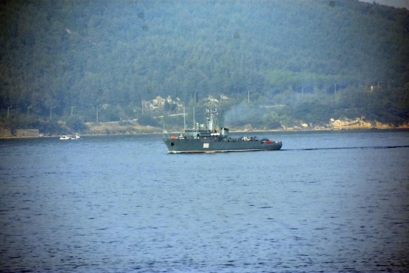 Rus Donanmasına ait 'MB-304' askeri römorkörü ile arkasında çektiği 840 borda numaralı devriye botu 'Kadet' ve 908 borda numaralı savaş gemisi 'Admiral Zakharin' Çanakkale Boğazı'ndan geçerek, Ege Denizi’ne doğru yol aldı. Marmara Denizi'nden saat 08.00'de Çanakkale Boğazı'na giriş yapan Rus Donanmasına ait 'MB-304' askeri römorkörü ile arkasında çektiği 840 borda numaralı devriye botu 'Kadet' ve 908 borda numaralı savaş gemisi 'Admiral Zakharin' Nara Burnu'nu döndükten sonra saat 10.30 sıralarında Çanakkale önlerinde oldu. 'Dur Yolcu' sembolü ile Kilitbahir Kalesi önünden geçen gemiler, Akdeniz'e inmek üzere Ege Denizi'ne doğru yol aldı. Rus Donanmasına ait gemilere boğazı geçişi sırasında Türk Sahil Güvenlik botu refakat etti.