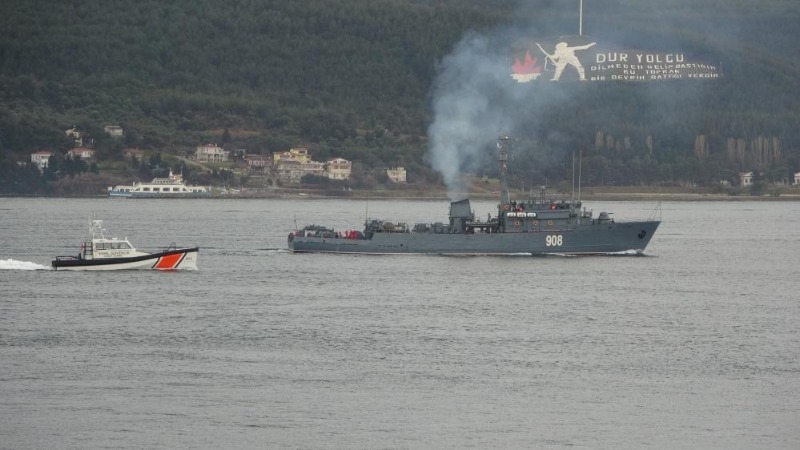 Rus Donanması’na bağlı 'MB-304' borda numaralı askeri römorkörü ile 908 borda numaralı ‘Vitse Admiral Zakharin’ mayın tarama gemisi Çanakkale Boğazı’ndan geçerek, Marmara Denizi’ne doğru yol aldı. Ege Denizi'nden saat 12.00’da Çanakkale Boğazı'na giriş yapan, Rus Donanması’na bağlı 'MB-304' borda numaralı askeri römorkörü ile 908 borda numaralı ‘Vitse Admiral Zakharin’ mayın tarama gemisi, 13.30 sıralarında Çanakkale önlerinde oldu. Kilitbahir Kalesi ve ‘Dur Yolcu’ sembolünü geçen gemiler, Nara Burnu’nu da dönerek Marmara Denizi’ne doğru yol aldı. Gemilere, boğazı geçişinde Türk Sahil Güvenlik botu refakat etti.