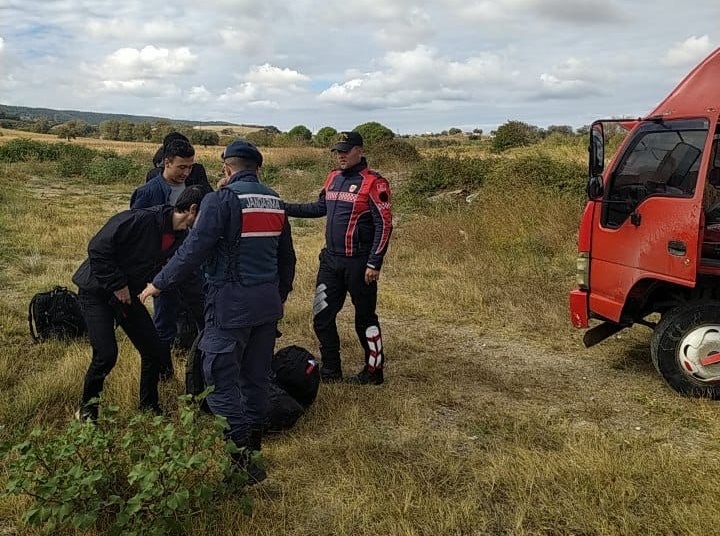 Çanakkale İl Jandarma Komutanlığı ekipleri, Eceabat ilçesinde düzenlenen kaçak göçmen operasyonunda saman balyaları yüklü kamyon kasasına gizlenmiş 27 kaçak göçmen yakaladı. Operasyonda 7 organizatör gözaltına alındı. Çanakkale İl Jandarma Komutanlığı ekipleri göçmen kaçakçılığıyla mücadele çerçevesinde kaçak göçmen ve organizatörlere geçit vermiyor. İl Jandarma Komutanlığı ekiplerince, Eceabat’ın Küçükanafartalar köyü Kireçtepe Jandarma Şehitliği mevkiinde düzenlenen operasyonda 22 FL 696 plakalı kamyon durduruldu. Kamyon kasasında saman balyaları arasına gizlenmiş 7’si kadın, 9’u erkek, 5’i erkek çocuk, 5’i kız çocuk olmak üzere 26’sı Afganistan ve 1’i İran uyruklu toplam 27 kaçak göçmen yakalandı. Kaçak göçmenlere öncülük eden 34 CDK 805 ve 34 ELE 853 plakalı araçlar ile göçmen kaçakçılığı yapan organizatörler F.M., E.Ö., D.Y., R.A., R.J., M.M. ve İ.E.K. gözaltına alındı. Operasyondaki 3 araç yediemin otoparkına çekildi. Kaçak göçmenler, jandarmadaki işlemlerinin ardından Ayvacık ilçesindeki Yabancıları Geri Gönderme Merkezine teslim edilecek. Organizatörlerin ise jandarmadaki işlemleri devam ediyor.