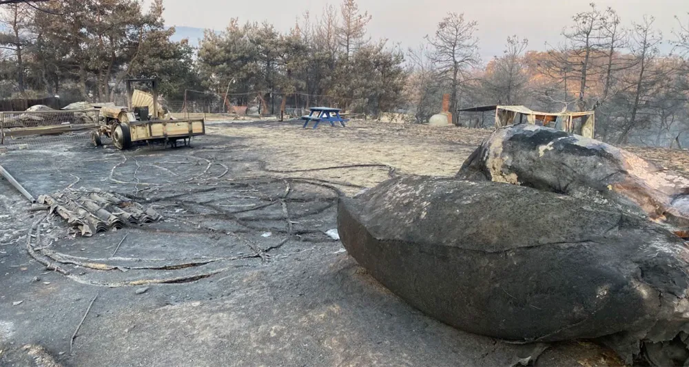 Çanakkale’de acı tablo gözler önüne serildi. Çanakkale’deki orman yangını 46. saatine girerken yangında en fazla etkilenen köylerden Yağcılar’da acı tablo günün ilk ışıkları ile gözler önüne serildi. Yağcılar köyünde 4 ev yanarken bir çok ağıl ve ahır da kullanılmaz hale geldi. Yangında bazı işyerleri ve tarım aletleri ile bir traktörde yanarak kullanılmaz hale geldi. Yangın nedeniyle tahliye edilen köyde yeşilin yerini siyah bir renk aldı. Yangın bölgesindeki köylerde 85 küçükbaş ve 3 büyükbaş hayvan telef oldu. Yağcılar köyünde yangın söndürme çalışmalarının ardından hasar tespit çalışmalarına başlanacak. Yanan köy terkedilmiş halde adeta hayalet köye dönüşürken, yangının izlerinin sürdüğü hala dumanların tüttüğü gözlendi.