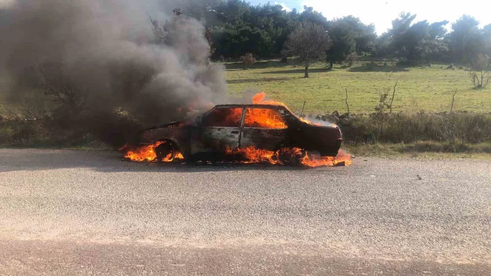 Seyir halindeyken yanan araç kullanılmaz hale geldi