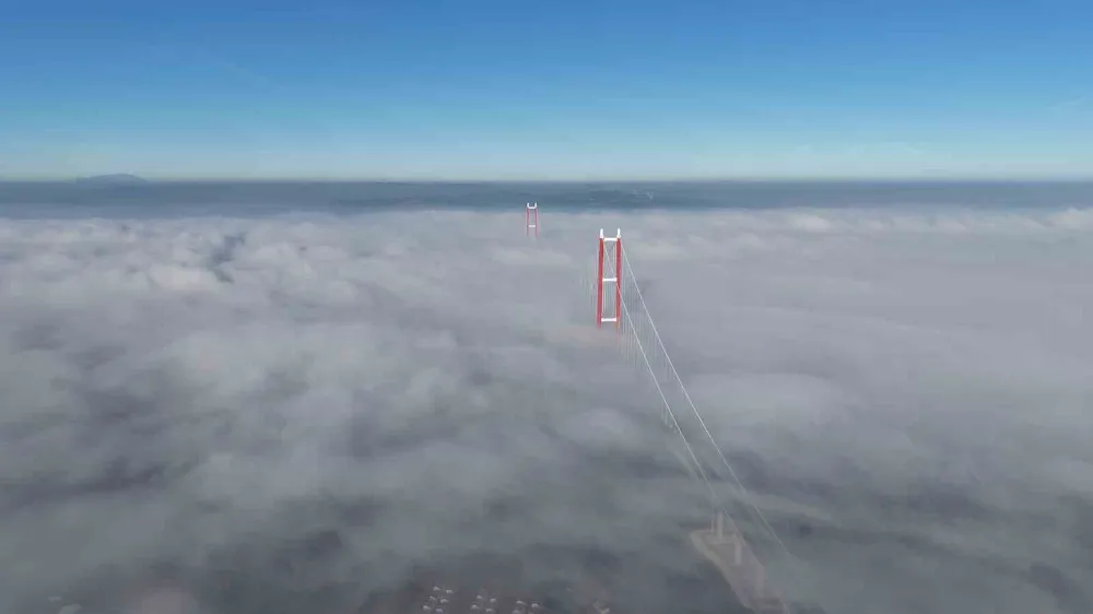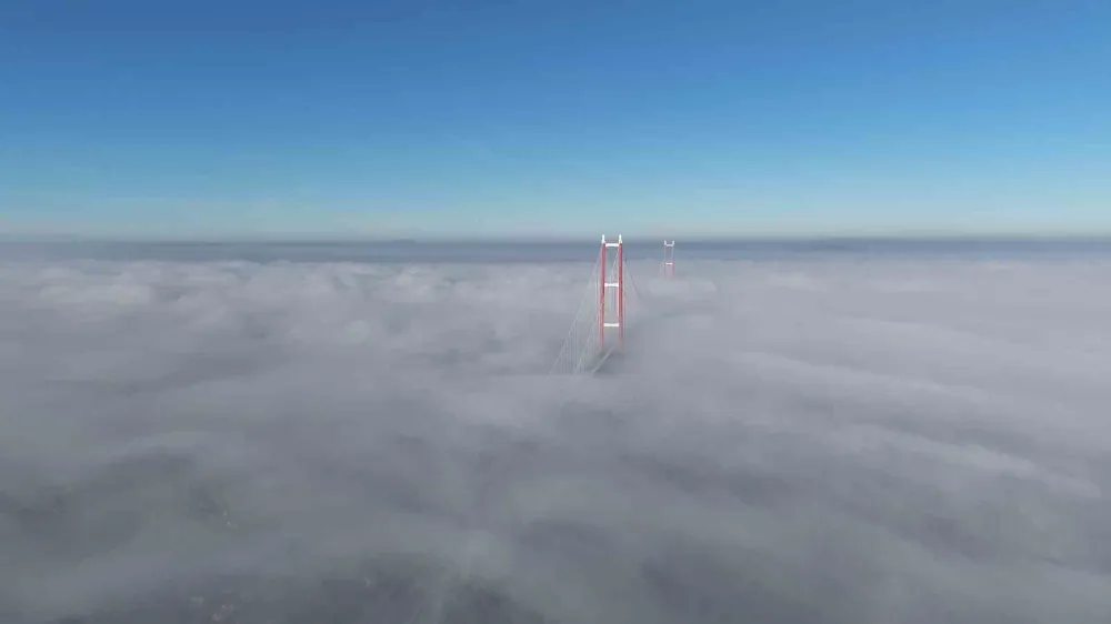 Çanakkale Boğazı yoğun sis sebebiyle transit gemi geçişlerine kapatıldı. 2023 metre ile dünyanın en uzun orta açıklığa sahip asma köprüsü olan 1915 Çanakkale Köprüsü’nün sis bulutu altındaki hali ise dron ile görüntülendi. Sis bulutu geçişi sırasında 1915 Çanakkale Köprüsü görüntüsüyle hayran bıraktı. Çanakkale’de etkili olan sis deniz ulaşımında aksamalara yol açtı. Boğaz trafiği görüş mesafesinin düşmesiyle saat 08.00 sıralarında çift yönlü olarak transit gemi geçişlerine kapatıldı. Çanakkale Boğazı Gemi Trafik Hizmetleri Müdürlüğü yetkilileri, kuzey ve güneyden giriş yapacak gemi kaptanlarını telsizle uyarıp boğaz trafiğinin kapatıldığını duyurdu. Gemiler demir bölgelerinde beklemeye başladı. 2023 metre ile dünyanın en uzun orta açıklığa sahip asma köprüsü olan 1915 Çanakkale Köprüsü’nün sis bulutu altındaki hali ise dron ile görüntülendi. Sis bulutu geçişi sırasında 1915 Çanakkale Köprüsü görüntüsüyle hayran bıraktı.