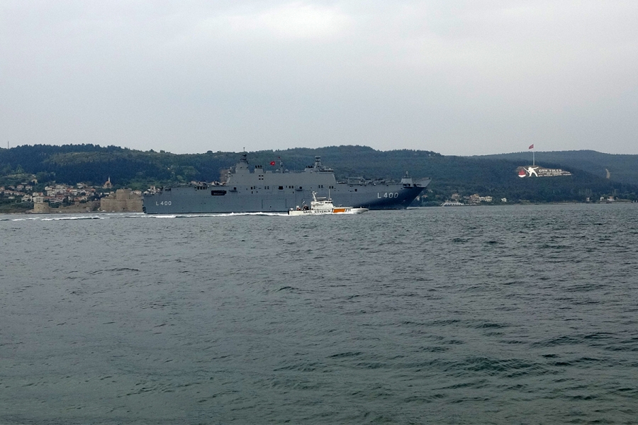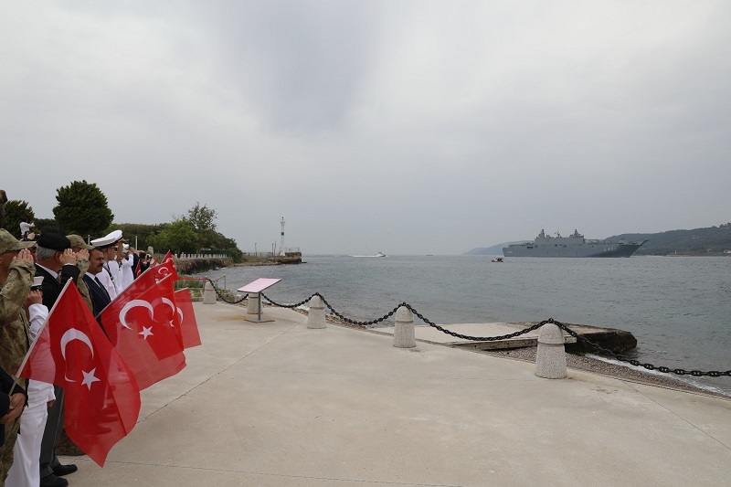 Dünyanın ilk silahlı insansız hava aracı (SİHA) gemisi TCG Anadolu, Çanakkale Boğazı'ndan geçti. Kilitbahir Kalesi ile Kilitbahir köyü dağından bulunan ‘Dur Yolcu' yazısı ile 1915 Çanakkale Köprüsü altından geçen ‘TCG Anadolu' Marmara Denizi'ne doğru yol aldı. İzmir'in Alsancak ilçesindeki liman ziyaretini tamamlayan Dünyanın ilk silahlı insansız hava aracı (SİHA) gemisi 'TCG Anadolu' Ege Denizi'nden Çanakkale Boğazı'na giriş yaptı. Saat 14.30 sıralarında Çanakkale önlerinde oldu. Çimenlik Kalesinde 1 günlük temsili askerlik yemin töreni olan 8 engelli genç, Çanakkale önlerinde geçişi sırasında ‘TCG Anadolu'yu selamladı. Kilitbahir Kalesi ile Kilitbahir köyü dağından bulunan ‘Dur Yolcu' yazısı önünden geçen ‘TCG Anadolu' gemisi saat 14.50 sıralarında boğazın manevra yapılması en güç noktası olan Nara Burnu'nu döndü.