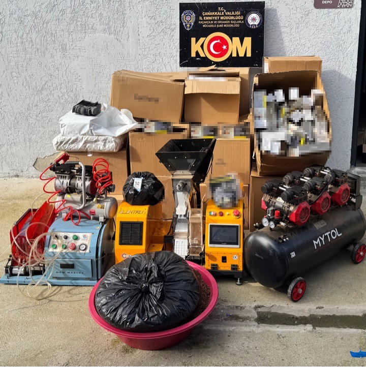 Çanakkale’de Kaçakçılık ve Organize Suçlarla Mücadele Şube Müdürlüğü ekiplerince düzenlenen tefecilik, yağma ve kaçakçılık operasyonunda 2 şüpheli tutuklandı. Çanakkale Cumhuriyet Başsavcılığı koordinesinde Kaçakçılık ve Organize Suçlarla Mücadele Şube Müdürlüğünce tefecilik, yağma ve kaçakçılık suçuna ilişkin başlatılan soruşturma kapsamında operasyon düzenlendi. Operasyonda şüpheliler M.B., K.S., F.S., E.Y ve S.Y. yakalandı. Şüphelilerin ikamet ve araç aramalarında yapılan aramalarda; çelik jop, para alışverişlerine ilişkin notların yazıldığı 2 ajanda, 251 bin 400 TL, 100 Euro, 50 Dolar para, 2 sigara sarma makinesi, 2 hava kompresörü, 99 bin 400 boş makaron, 31bin 940 dolu makaron, 635 paket 100’er gramlık bandrollü tütün, 3000 boş sigara kutusu, 20 kilogram kıyılmış tütün ele geçirildi. Şüphelilerden E.Y. ve S.Y’ye kaçakçılık suçundan işlem yapıldı. Şüpheliler M.B., K.S. tefecilik ve yağma suçlarından tutuklandı. Şüpheli F.S. ise adli kontrol tedbiri ile serbest bırakıldı.