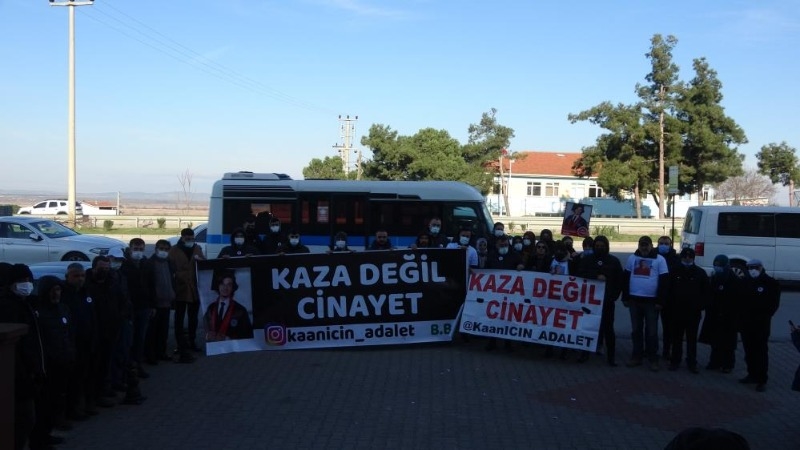Necati Kaan Şahin'in yakınları mahkeme öncesinde Biga Adliyesi önünde toplanarak ‘Kaza değil, cinayet’ pankartları ve merhum Şahin’in fotoğraflarını açtılar. Bir önceki duruşmada tutuksuz yargılanmasına karar verilen sanık Mehmet Ali Şahin’e bugün görülen karar duruşmasında 3 yıl 4 ay hapis cezası kararı çıktı.