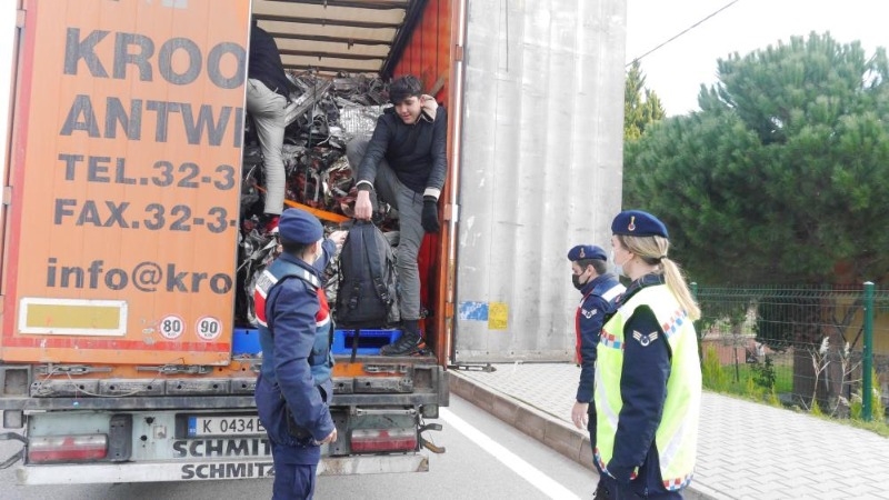 Hurda alüminyum yüklü tır ile Bulgaristan’a değil de İzmir’e gittiklerini anlayan ve soğuk nedeniyle donma tehlikesi atlatan göçmenler Küçükkuyu Mıhlı mevkiinde tırın brandasını yırtıp yoldan gecen araçlara işaret yapıp TIR sürücüsünün aracını durdurmasını sağladılar. Mıhlı mevkiinde durup dorsedeki göçmenleri gören sürücü jandarmaya haber vermek için 112’yi aradı. Olay yerine gelen jandarma ekipleri tuttukları tutanak ile mühürlü kapıyı açanınca içerideki 4 Afgan göçmen gözaltına alındı. İfadeleri alınan göçmenler daha sonra Ayvacık Geri Gönderme Merkezine teslim edildiler.